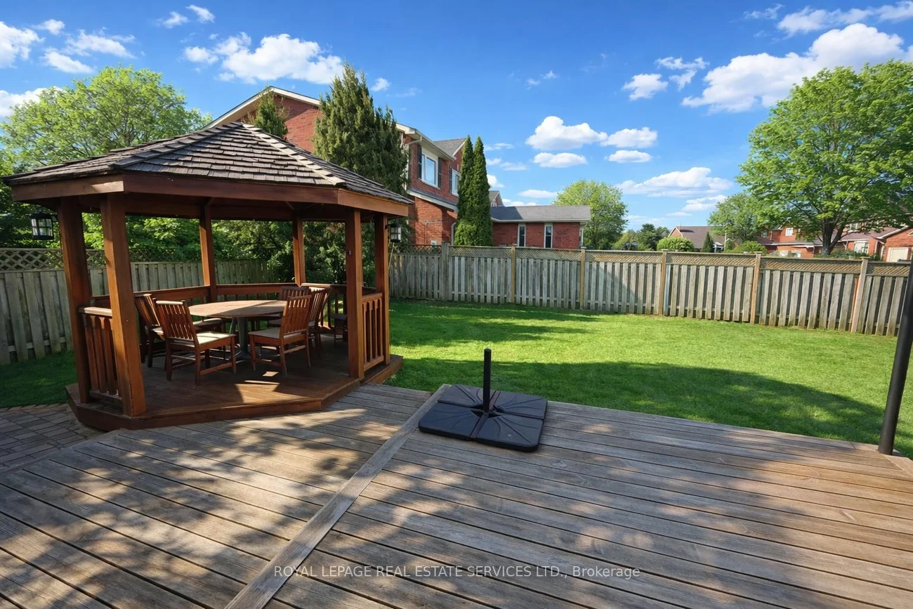 Welcome to 1224 Tilcroft Gate, an exceptionally well-maintained 4 + 1 bedroom family home located on a quiet, family-friendly street in the heart of Glen Abbey. Designed for comfortable everyday living, the main level features open-concept living and dining areas, a spacious kitchen overlooking a bright breakfast area with walkout to the deck, and a family room with charming brick gas fireplace. A convenient powder room and laundry room with access to the garage completes this level. A hardwood staircase leads to the upper level, where the primary bedroom offers a walk-in closet and a renovated four-piece ensuite (2017) with dual sinks. Three additional bedrooms and a five-piece main bath provide plenty of space for family and guests. The finished basement expands the living space with a large recreation area, fifth bedroom, den/office, a three-piece bathroom, cold room, and abundant storage. Valuable updates include fresh paint (2025), front door (2025), fencing (2022), furnace and central air conditioner (2021), roof (2020), and laminate flooring (2017) throughout all three levels. Step outside to a fully fenced private backyard featuring a patio, custom tiered deck and gazebo - perfect for outdoor dining and relaxing. Ideally located close to top-rated schools including Abbey Park High School, scenic Glen Abbey and McCraney Creek trails, Glen Abbey Community Centre, shopping, dining, hospital, and everyday amenities. Commuting is effortless with easy access to public transit, major highways, and the GO Train. (certain images have been digitally enhanced)