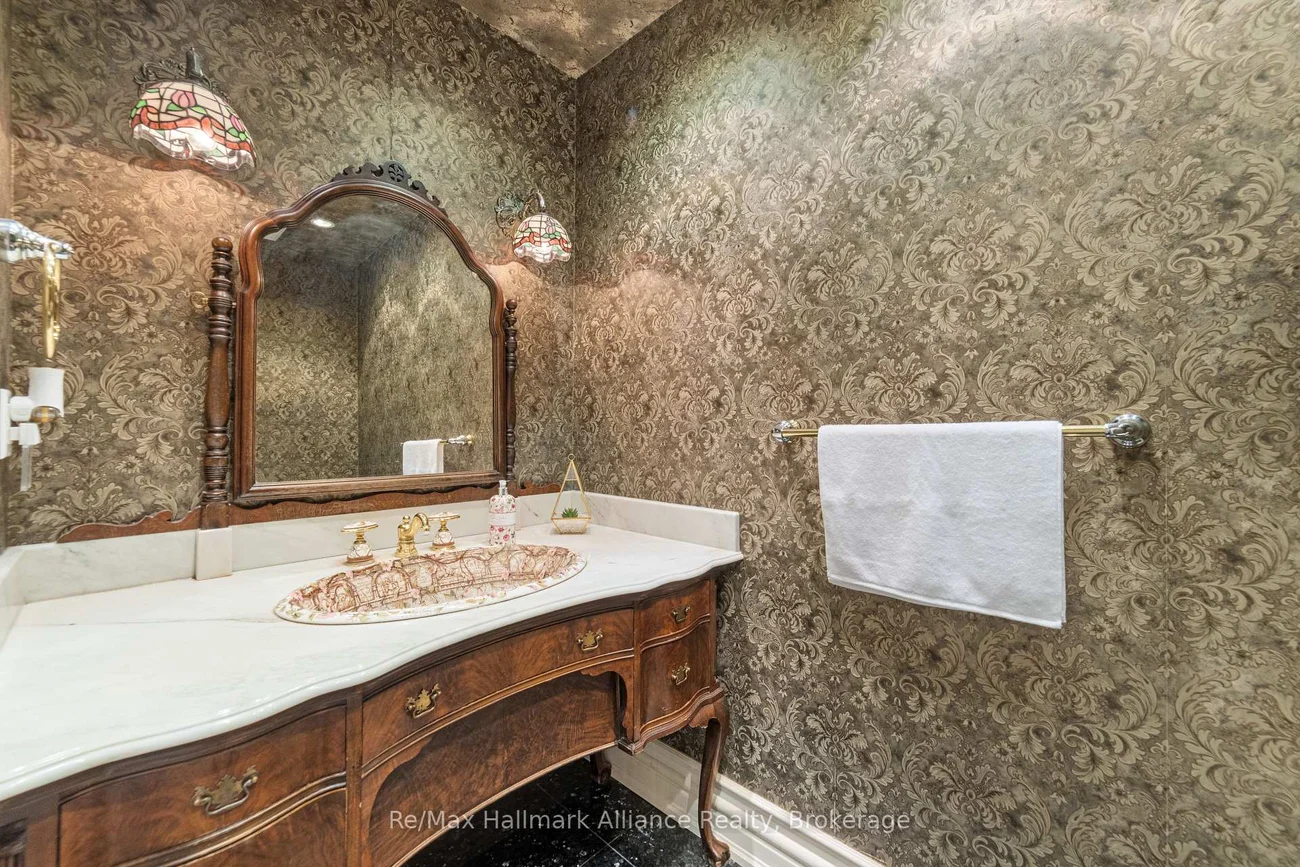 A Rare Executive gated 1.39-acre ravine estate in Morrison sought after community timeless elegance meets modern luxury this residence provides unmatched privacy, lush landscaping, & refined outdoor living. Through the custom 8-foot beveled glass entry doors, the soaring foyer sets the tone with emerald pearl granite floors, a handcrafted Austrian crystal chandelier on motorized lift, & a sweeping French Provincial staircase with wool Victorian Tapestry runner. The main floor boasts elegant formal living & dining rooms with hand-carved marble fireplaces, cathedral ceilings, plaster mouldings, & Palladian windows framing ravine views. A richly appointed library & office feature maple plank flooring, crown moulding, & custom draperies. The family room offers panoramic vistas & a mahogany fireplace, while the chefs Hawthorne kitchen impresses with cherry cabinetry, granite surfaces, premium appliances, & a walkout to the terrace. Upstairs, the luxurious primary suite includes a two-way fireplace, custom lighting, & a walk-in closet with attic access. The spa-inspired ensuite offers heated floors, Jacuzzi air tub, granite shower, & Strass crystal lighting. Three additional bedrooms each enjoy private ensuites, cathedral ceilings, & custom finishes. A versatile great room with terrace access & a full laundry suite complete this level. The lower level is an entertainers dream with a billiards & games room, full walnut bar, gym, media lounge, & spa retreat with sauna & steam shower. Radiant heated floors, & abundant storage enhance the space. Outdoors, the property is equally breathtaking with two stone gazebos joined by a large pergola, extensive walking paths, & a serene koi pond and a Japanese-inspired garden creating a private resort-like escape. With 4+1 bedrooms, 7 bathrooms, elevator access to all levels, multiple terraces, & a gated circular driveway, this estate offers over 10,000 sq. ft. of refined living in one of Oakville's most coveted neighbourhoods.
