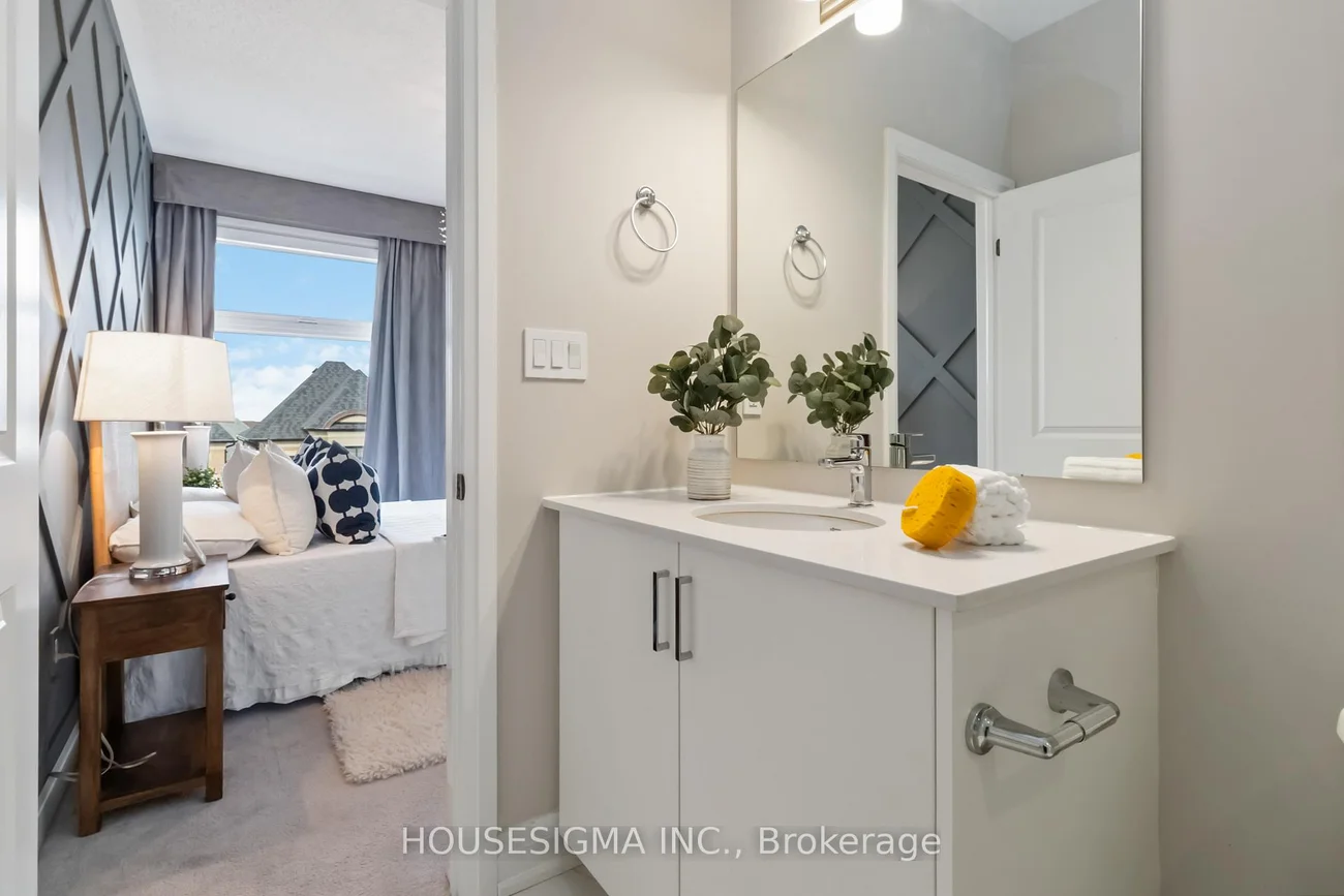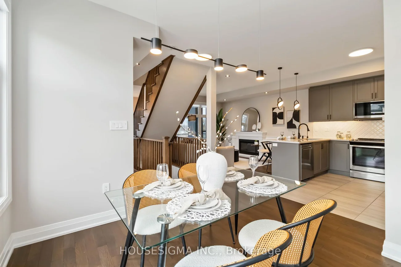 Impressive urban freehold end-unit townhome in sought-after Glen Abbey, close to top schools, shopping, parks & highways. Upscale corner unit with oversized windows, wraparound views, high ceilings and tons of natural sunlight, showcasing luxurious finishes throughout.Ground level offers versatile bedroom/office with heated floors, bonus living space, interior garage access, premium washer/dryer, walk-in wardrobe with built-in shelving, walk-in storage. Enclosed porch with epoxy floor.Open-concept main level features chef's kitchen with quartz counters, stainless steel appliances, peninsula with bar seating, premium built-in fridge & microwave, under-counter sensor lighting, motion-sensor faucet, soap dispenser, water filter + accessories. Separate dining & bright great room with fireplace and wainscoting, access to second floor terrace.Upper level with 3 bedrooms & 2 baths, and another terrace; primary suite with feature wall & blackout blinds. Upgraded lights/chandeliers and window tint throughout. Finished garage with epoxy floor, storage, finished walls, upgraded belt-drive opener + Tesla charger connection. Extras: whole-home humidifier and transferable Grand Alarms security system. Move-in ready and a must-see!