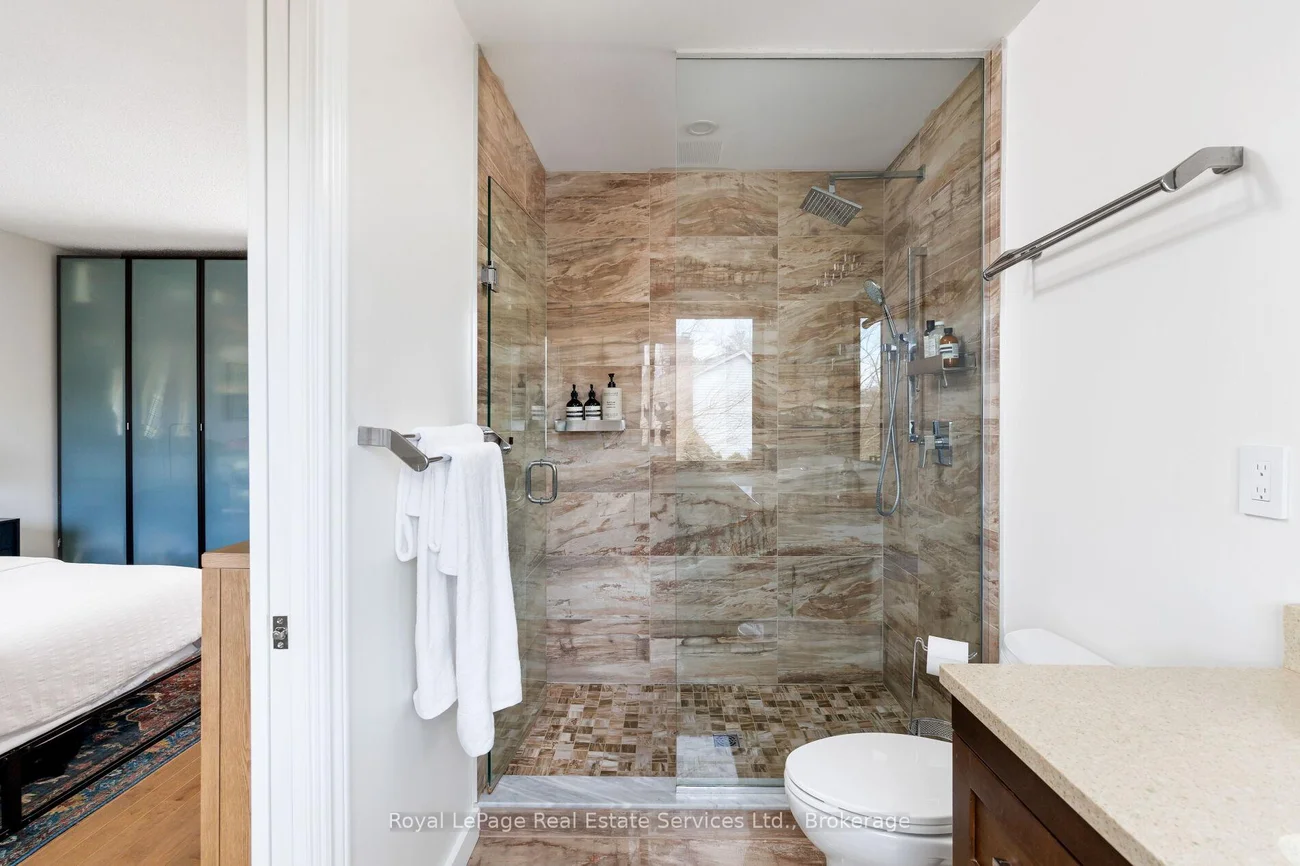 Welcome to 181 Chalmers Street, a beautifully renovated home nestled in the heart of Brontë. Thoughtfully renovated from top to bottom, this property seamlessly blends classic charm with modern finishes. Striking black-framed windows(2022) perfectly complement the timeless brick exterior, while inside, hardwood flooring, designer lighting, and contemporary finishes flow throughout. With 1,936 sqft of total living space. Enter into the spacious foyer with newly crafted staircase enhancing the home's timeless appeal. The generously sized living room is framed by the striking windows that act as a focal point. Proper dining room with Designer Lighting, walk-out to garden, and direct kitchen access make this the perfect gathering space. The renovated kitchen includes quartz countertops, water filtration system, under cabinet lighting, and Coffee bar, Upstairs, you'll find three generously sized bedrooms, including a primary suite complete with wall lined built-in wardrobe and private ensuite w/ separate glass enclosed shower. The fully finished basement offers exceptional versatility, featuring a spacious recreation area, a dedicated private office, laundry room with LG appliances, mounted television, and rough-in plumbing for potential 4th washroom, and ample storage - ideal for growing families or those working from home. Step outside to a private backyard and enjoy a stone patio for outdoor entertaining, thoughtfully designed garden beds, a convenient storage shed, new stone walk-way, and mature trees that provide both ambiance and privacy. Perfectly suited for young families or those looking to "right size," this turn-key home offers a true sense of community. Surrounded by scenic walking trails, parks, top restaurants, and friendly neighbours. Welcome Home.