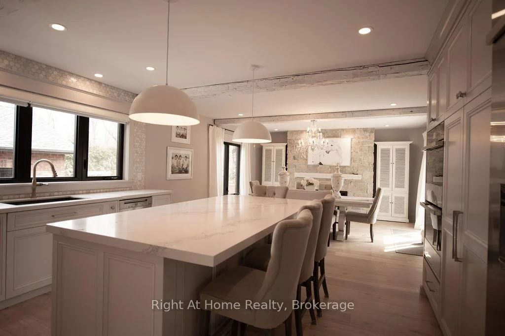Nestled in the Heart of Downtown Oakville, this renovated 3000+ sq ft home blends historical charm with modern luxury. Offering 4 bedrooms and 2.5 baths, this home has been extensively updated throughout by Stonewood Homes and finishes that include wide-plank white oak flooring throughout, wood beams, and natural stone fireplaces. The kitchen and walk-through pantry features luxurious custom cabinetry by Chervin Kitchens, high-end appliances and Ceasarstone countertops. The outdoor spaces offer 2 distinct living areas, a Detached 2 car Garage and 2 Driveways. Convenient Downtown living, steps to dining, shopping and Oakville culture.