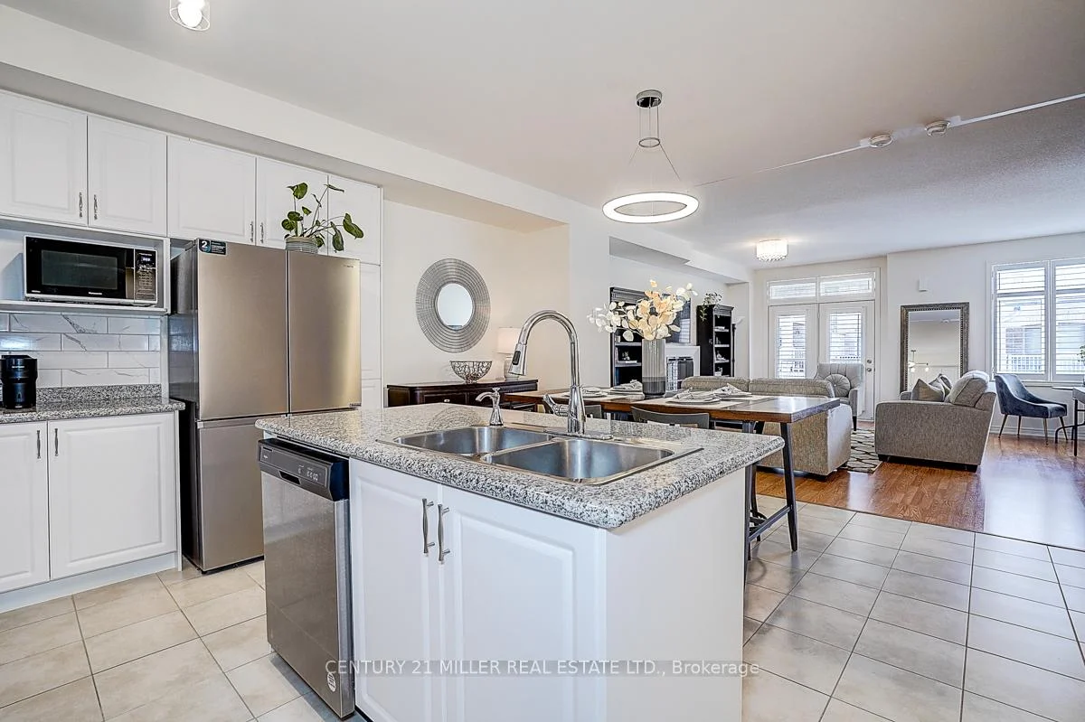 Welcome to 465 Manhattan Common, a bright and beautifully upgraded executive townhome in Oakville's highly desirable Joshua Meadows community. Built in 2021, this southeast-facing home offers almost 2,000 sq. ft. of stylish living space plus basement, featuring 3 bedrooms, a main-floor den, and 3 bathrooms. Sun-filled interiors showcase an open-concept layout, 9-ft ceilings on the main and second floors, laminate flooring, pot lights, upgraded light fixtures, California shutters, and an electric fireplace. The main level offers a spacious den/home office, laundry area, flexible sitting space, and inside access to the built-in garage. The second floor features a chef-inspired kitchen with stainless steel appliances, quartz countertops, backsplash, extended cabinetry, pantry space, centre island, and custom chandelier, overlooking the breakfast and living area with walk-out to a private covered balcony. Upstairs, the spacious primary retreat offers a walk-in closet, 4-piece ensuite, and walk-out to a private balcony. Two additional bedrooms offer large windows or skylight, plus ample closet space, and share a 4-piece bathroom.Unfinished basement with cold room offers excellent storage and future potential. Located close to top-rated schools, parks, shopping, Uptown Core, Ridgeway Plaza, Walmart, Superstore, Longo's, Canadian Tire, Oakville Transit, and major highways including the 403, 407, QEW, and 401, this is a wonderful opportunity to enjoy family-friendly living in one of Oakville's most convenient communities.