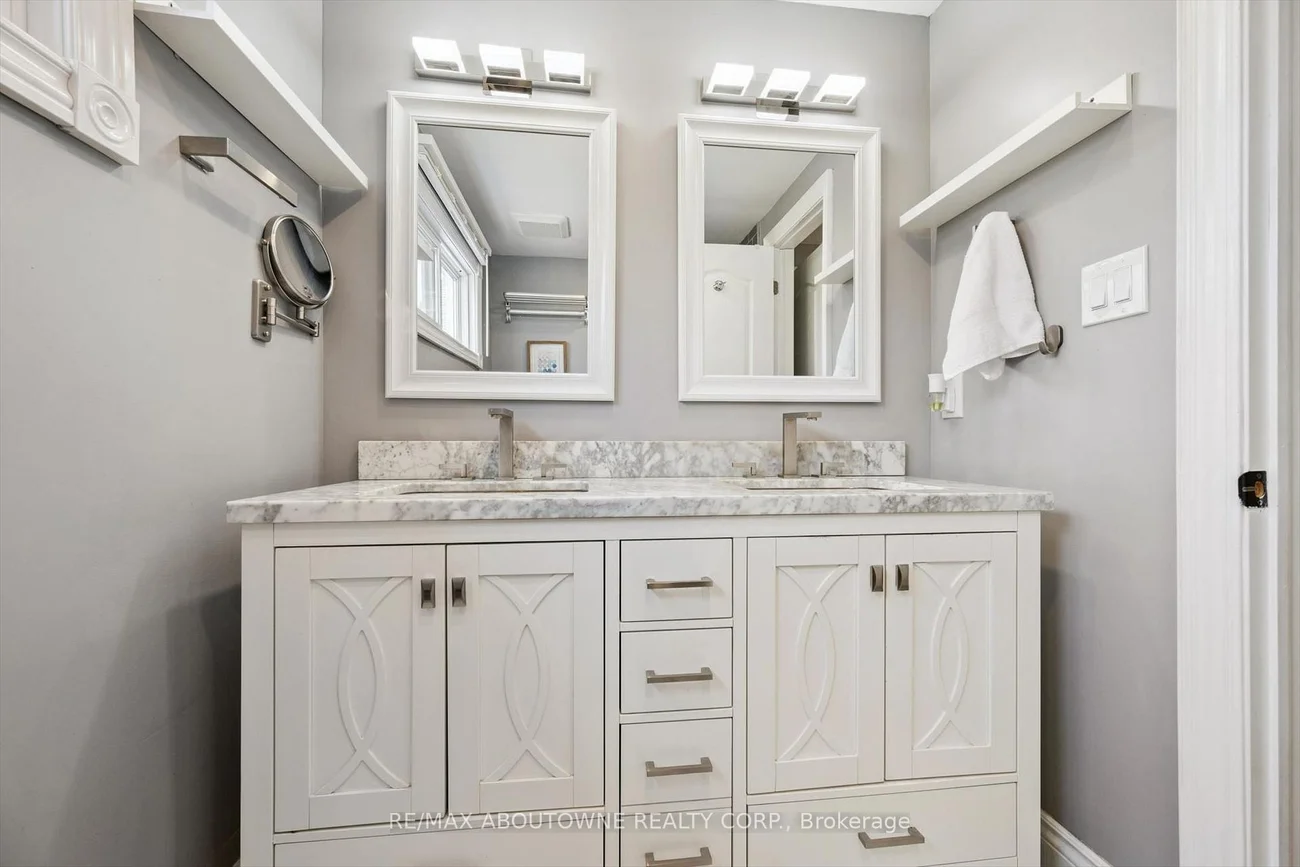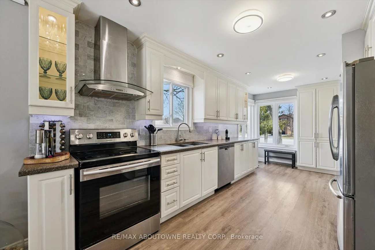 Stunning fully renovated home in the highly sought-after Glen Abbey neighborhood, offering the feel and privacy of a detached residence in a wide and quiet crescent. This exceptional property is truly turnkey and move-in ready.Updated from top to bottom, the home is filled with natural light, creating a bright and welcoming atmosphere throughout. The modern open-concept layout features elegant flooring, stylish lighting, and a cozy gas fireplace that adds warmth and character to the main living space.The custom-designed kitchen offers abundant cabinetry and generous granite countertop space, making it perfect for everyday living and entertaining. Upstairs, you'll find three bedrooms, including a beautifully updated primary suite featuring an ensuite with a marble-top double vanity sink and another renovated 4-piece bathroom.The fully finished basement provides excellent versatility, offering a full bathroom and additional living space for any mix of guest accommodations, home office, or recreation area, while still allowing plenty of room for gatherings and comfortable family evenings.Step outside to a true backyard oasis. The professionally landscaped extra-large yard features fruit-bearing apple and cherry trees, a tranquil fish pond, a thriving vegetable garden, and beautiful perennial flower beds that return year after year. Two spacious and charming gazebos create the perfect setting for relaxing and entertaining while enjoying the privacy and natural beauty of this exceptional outdoor retreat.Ideally located near top-ranked schools including Abbey Park High School and Pilgrim Wood Public School, just steps from Old Abbey Park and a vast network of scenic trails, nearby major shopping centers, the Queen Elizabeth Way, and the renowned Glen Abbey Golf Club. A rare opportunity to own a beautifully updated home in one of Oakville's most desirable communities.