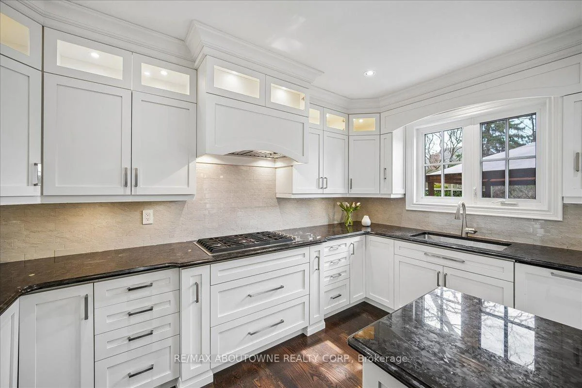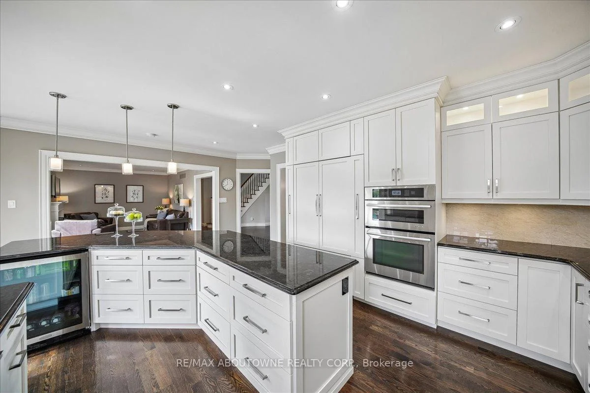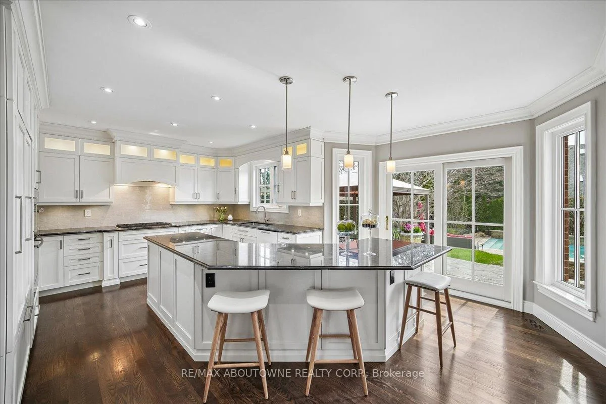 Welcome to 1494 The Links in the Fairway Hills, Glen Abbey Golf Course community. This 4 plus 1-bedroom executive home has been renovated with high end custom finishes throughout. Fabulous kitchen with custom cabinets and center island with built-in Jenn Air appliances including French door refrigerator, double wall oven/convection microwave, 6 burner gas cooktop, Miele Dishwasher, and beverage fridge. Granite counters and linear mosaic marble backsplash. Kitchen is open to family room with fireplace - both overlooking the backyard. Private office with access to backyard and custom white built-in cabinets and glass desk. Updated windows, doors and carriage style garage doors. Finished onsite oak hardwood through the main floor. Spacious living room and separate dining room. Second floor has large primary bedroom with decadent renovated spa like 6-piece ensuite bathroom. Three other spacious bedrooms and fully renovated main bathroom. Both bathrooms have heated floors. Hardwood throughout second floor. Fully finished lower level has walk out/up to backyard, entertainment area, games area, fifth bedroom and 3-piece bathroom with heated floors, custom wine cellar and kitchenette. Perfect for nanny or in-law suite. Tons of storage! Backyard with heated salt-water pool, cabana, putting green, and pergola. Professional landscaping and hardscaping in front and rear yards. Perfect move in ready family home.