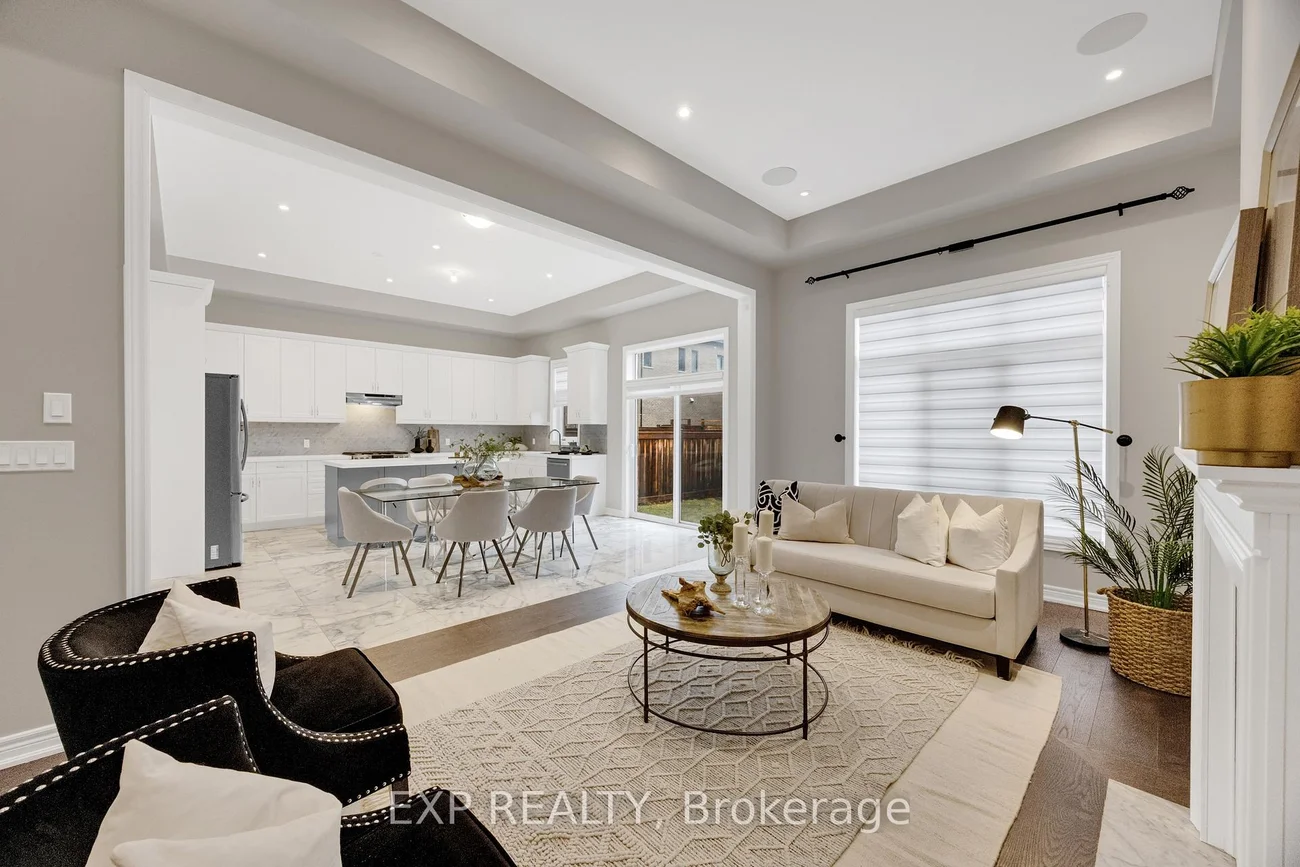 Welcome to an exceptional residence in the prestigious Seven Oaks enclave of the highly sought-after GO Glenorchy community, known for scenic parks, top-rated schools, and easy access to highways and amenities. This elegant home features 11-foot ceilings, 8-foot doors, and rich oak hardwood flooring, creating a bright, sophisticated feel. The open-concept main floor includes a cozy gas fireplace and a stylish kitchen with a large island, ideal for everyday living and entertaining. Thoughtful upgrades include automated window coverings, rough-in ceiling speakers, and a custom staircase with black birds nest style steel spindles. The primary suite offers dual walk-in closets and a spa-like ensuite with double sinks, marble tile, a Moen spa system, and frameless glass shower. Spacious bedrooms provide flexibility for family or work-from-home needs. The fully fenced backyard offers privacy for relaxation or entertaining. Built in 2022 by Fernbrook Homes and covered by Tarion Warranty, this home blends modern design with lasting quality. Book your private showing today!