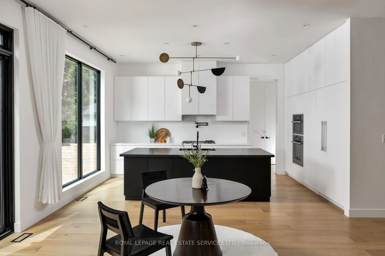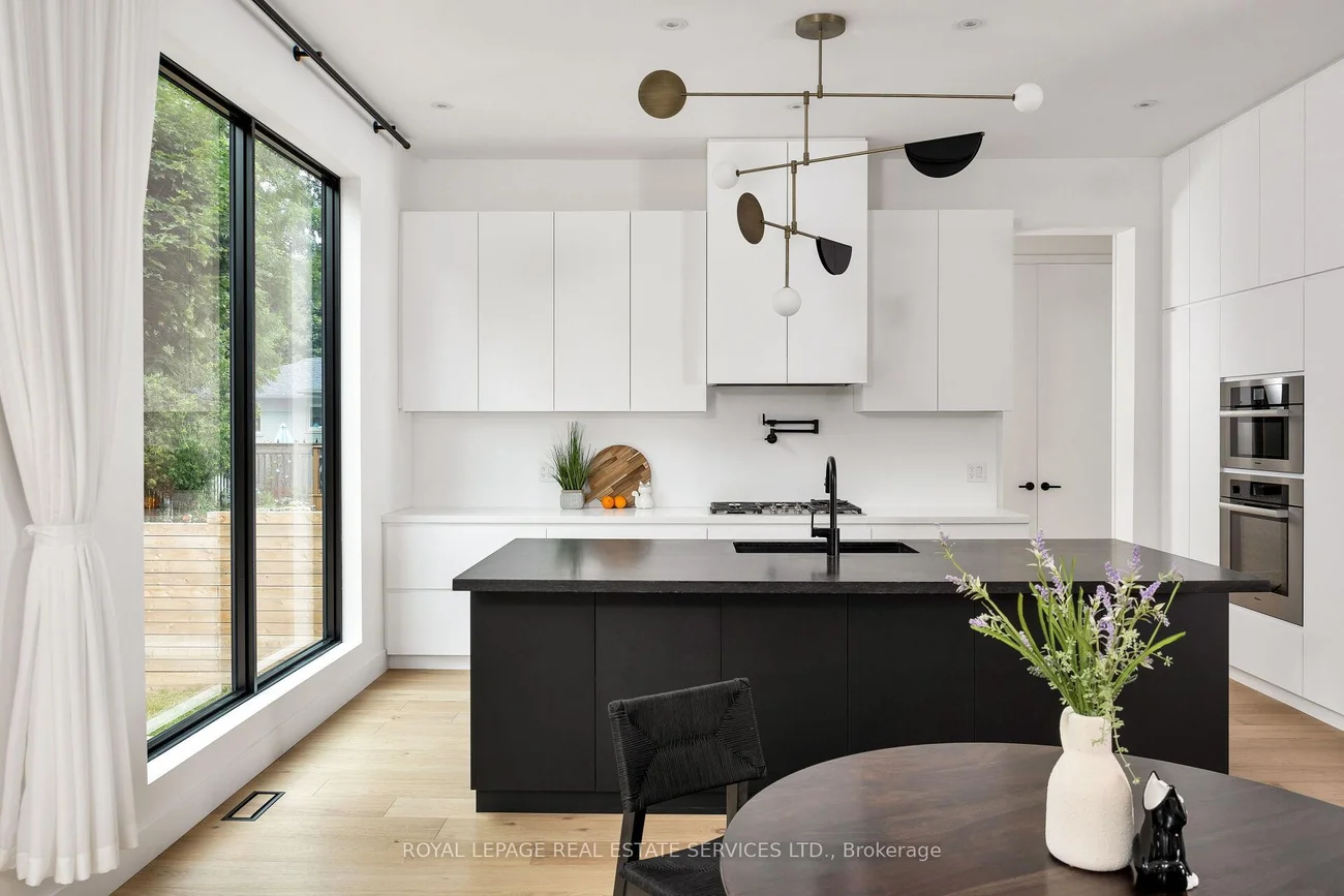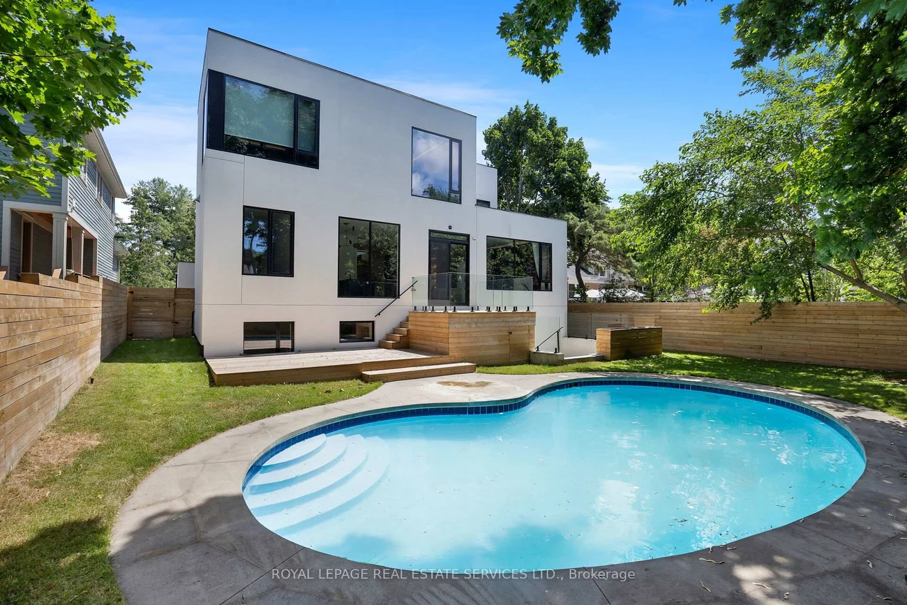 Exquisite modern house with blends of form, light, and emotion. This architectural marvel is designed by Atelier Sun, published on Archello & Toronto Interiors. Completed in 2023, with over5,300 sqft of total living space, offering luxury living at its finest. The open concept main level is anchored by custom wood wall paneling that creates inviting atmosphere upon entering. Expansive window openings acting as picture frames, and flooded with natural lights throughout the house. Soaring 10ft ceilings on the main and upper levels, highlighted by floating staircase & custom metal railing that elevate the modern elegance. The chef's kitchen features Miele appliances, Caesar stone countertops and sleek cabinetry. Flows seamlessly into the family room with a stunning granite slab surrounds the gas fireplace. Custom designed lighting is for both relaxation and entertainment. This home boasts four bedrooms on the upper level, each with its own ensuite and heated floors. The finished basement offers recreation room, wet bar, gym, studio, guest bedroom with ensuite. Walkout to your backyard oasis, a saltwater pool, two tiered deck, concrete patio stairs is the perfect spot for outdoor movie nights. Located in one of Oakville's most desirable neighbourhood and steps from top-rated schools. Combines with thoughtful design and smart technology, this artwork offers you an unparalleled living experience.