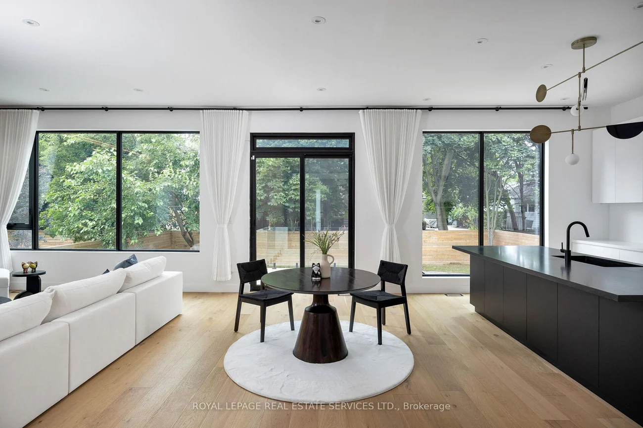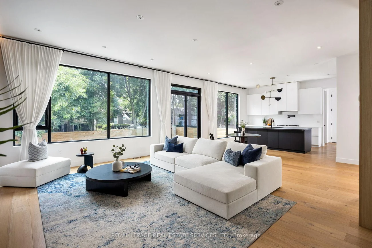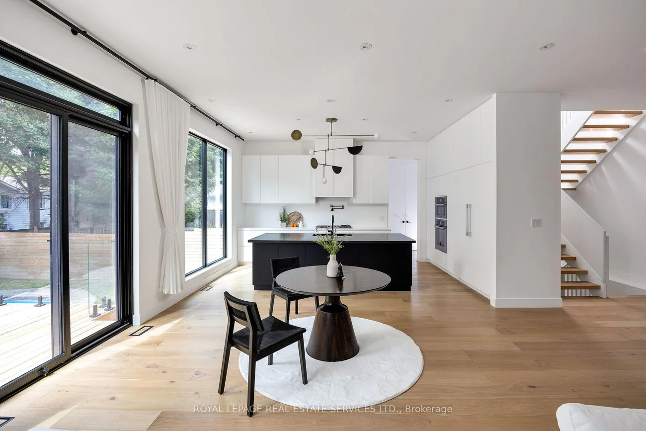 Exquisite modern house with blends of form, light, and emotion. This architectural marvel is designed by Atelier Sun, published on Archello & Toronto Interiors. Completed in 2023, with over5,300 sqft of total living space, offering luxury living at its finest. The open concept main level is anchored by custom wood wall paneling that creates inviting atmosphere upon entering. Expansive window openings acting as picture frames, and flooded with natural lights throughout the house. Soaring 10ft ceilings on the main and upper levels, highlighted by floating staircase & custom metal railing that elevate the modern elegance. The chef's kitchen features Miele appliances, Caesar stone countertops and sleek cabinetry. Flows seamlessly into the family room with a stunning granite slab surrounds the gas fireplace. Custom designed lighting is for both relaxation and entertainment. This home boasts four bedrooms on the upper level, each with its own ensuite and heated floors. The finished basement offers recreation room, wet bar, gym, studio, guest bedroom with ensuite. Walkout to your backyard oasis, a saltwater pool, two tiered deck, concrete patio stairs is the perfect spot for outdoor movie nights. Located in one of Oakville's most desirable neighbourhood and steps from top-rated schools. Combines with thoughtful design and smart technology, this artwork offers you an unparalleled living experience.