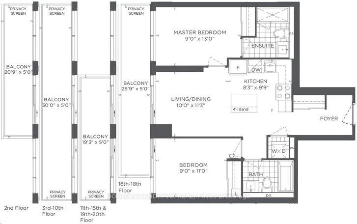 Top floor with beautiful view. Bright And Spacious 2 Bedroom, 2 Bathroom Condo Unit Offers 9Ft Ceilings With Floor To Ceiling Window. One Parking And One Locker. Close To Hwy, Public Transits, Schools, Community Center, Parks, Shops. Looking For Aaa Tenants!