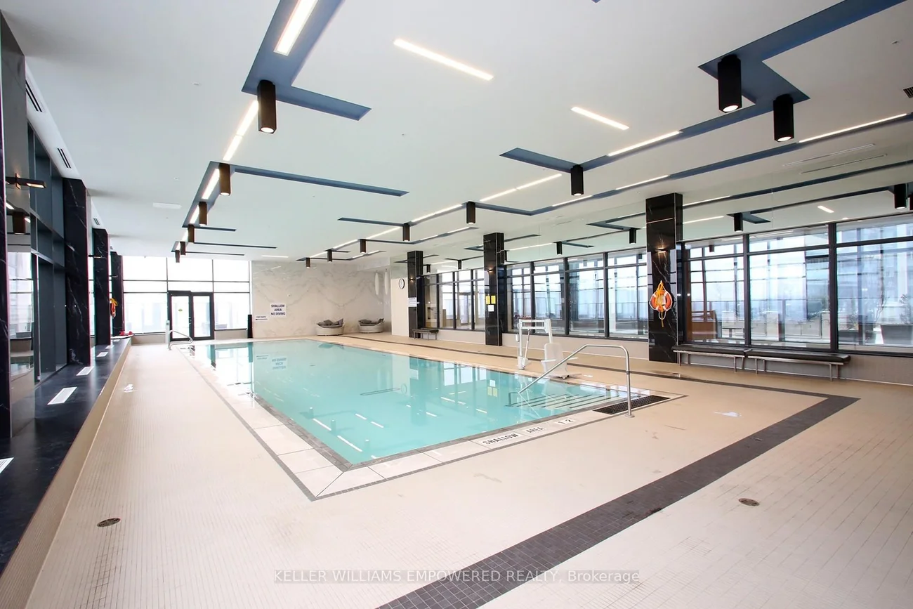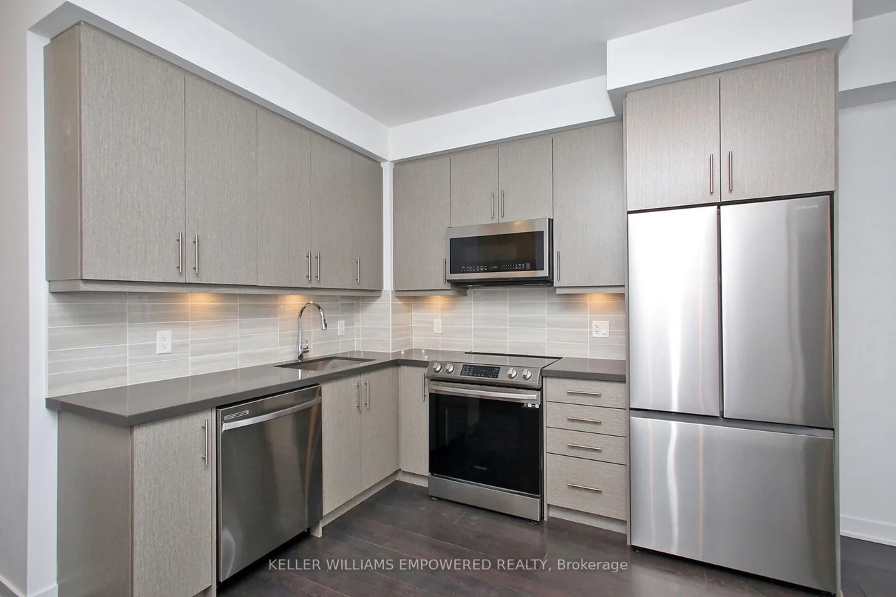 Welcome to this stunning 2-bedroom, 2-bathroom suite in a nearly new Pemberton-built residence, offering 770 sq ft of thoughtfully designed living space with a bright, open layout and premium finishes throughout. This split-bedroom floor plan provides excellent privacy and functionality, highlighted by 9-ft smooth ceilings, premium laminate flooring, and floor-to-ceiling windows that fill the home with natural light. The modern kitchen features sleek stone countertops and stainless steel Samsung appliances, seamlessly flowing into the combined living and dining area with walkout to a 100 sq ft balcony boasting unobstructed east-facing views. The spacious primary bedroom offers a large double closet and a stylish 3-piece ensuite with chic glass shower, while the second bedroom also features a double closet and easy access to the main bathroom with a full bathtub. Enjoy the convenience of 1 parking space and 1 locker. Residents have access to exceptional amenities including a long indoor pool with lounge area, theatre room, two party rooms, and an expansive outdoor terrace with BBQs. Located in a highly convenient area just minutes to Langstaff GO Station, Hwy 7, Hwy 407, Yonge Street, shops, restaurants, and Langstaff Community Centre & Park. Designated public schools include: Charles Howitt PS, Adrienne Clarkson PS (French Immersion), Langstaff SS, Alexander Mackenzie HS (IB Program). A fantastic opportunity to live in a vibrant and connected community!