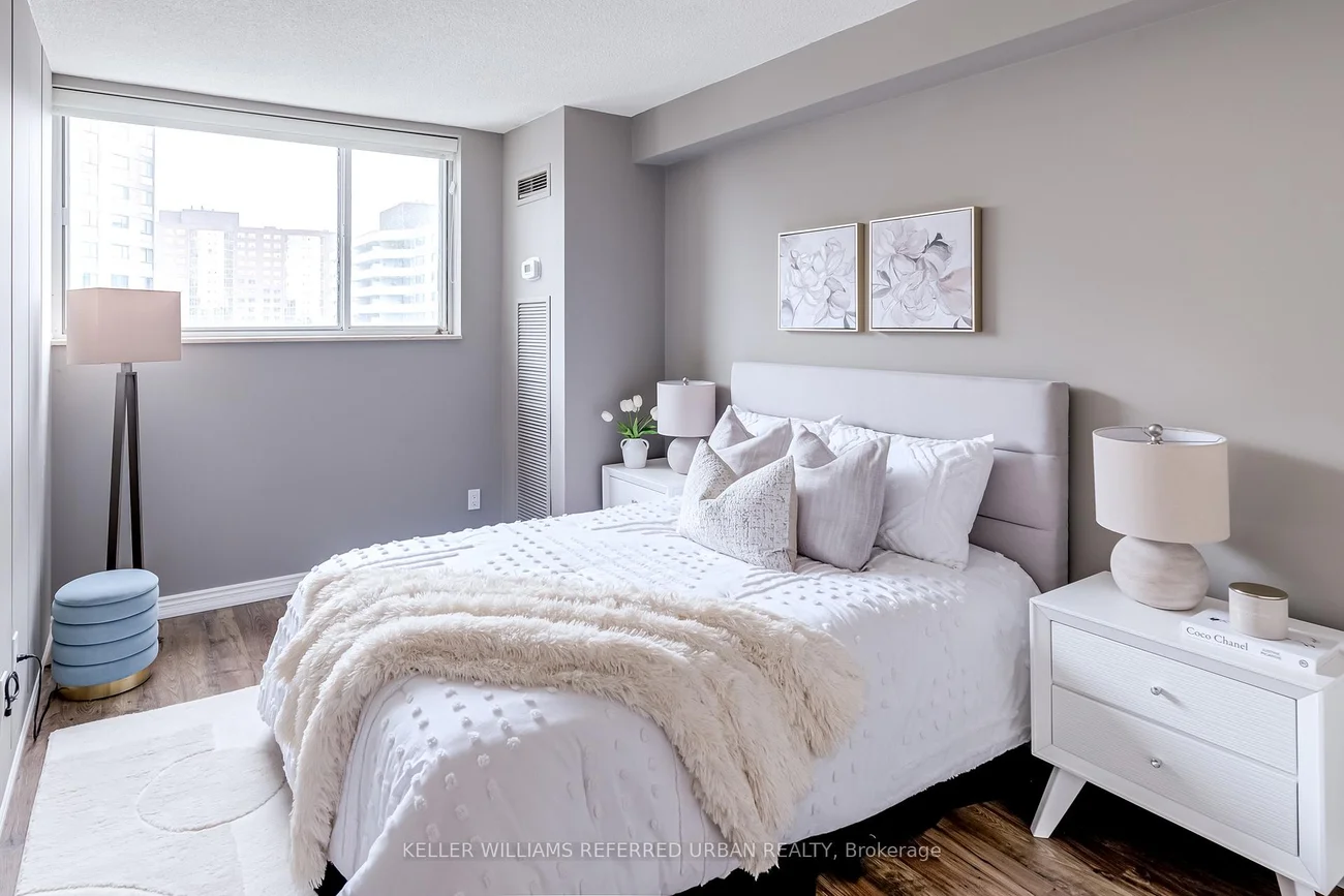 OPEN HOUSE FEB 7TH FROM 1- 4PM.Fed up with shovelling? Want convenience AND luxury for a downsize that doesn't feel like a downgrade? This house-sized unit is 1,385 sq. ft. of thoughtfully designed, move-in ready living perfect for downsizers who don't want to sacrifice space or comfort.This suite offers 3 full bedrooms, 2 bathrooms, and a rare side-by-side parking for two cars just steps from the elevator. The sun-filled 115 sq. ft. balcony faces southeast, perfect for morning coffee or container gardening while enjoying a peaceful, treed view. Inside, you'll love the bungalow-style layout with bedrooms, upgraded bathrooms, and full laundry room with extra storage - all in their own private wing. The large galley kitchen features NEW (2026) white cabinetry, pantry, coffee bar, NEW stone counters(2026), NEW flooring (2026) and newer appliances, along with a custom glass backsplash. A separate dining room makes it easy to host family dinners, and the living room is airy and inviting.The oversized primary suite is a true retreat, complete with a seating area, walk-in closet, and spa-like ensuite. Two additional bedrooms are perfect for visiting family, hobbies, or a home office. This quiet, dog-friendly building has a park-like setting, excellent amenities, and condo fees that include ALL utilities - heat, hydro, water, A/C, cable TV, and high-speed internet for worry-free budgeting. Located just steps from Yonge Street, transit, shopping, groceries, and restaurants. Everything you need is at your doorstep. Take the walk-through video and 3D tour today and imagine your stress-free move-in!