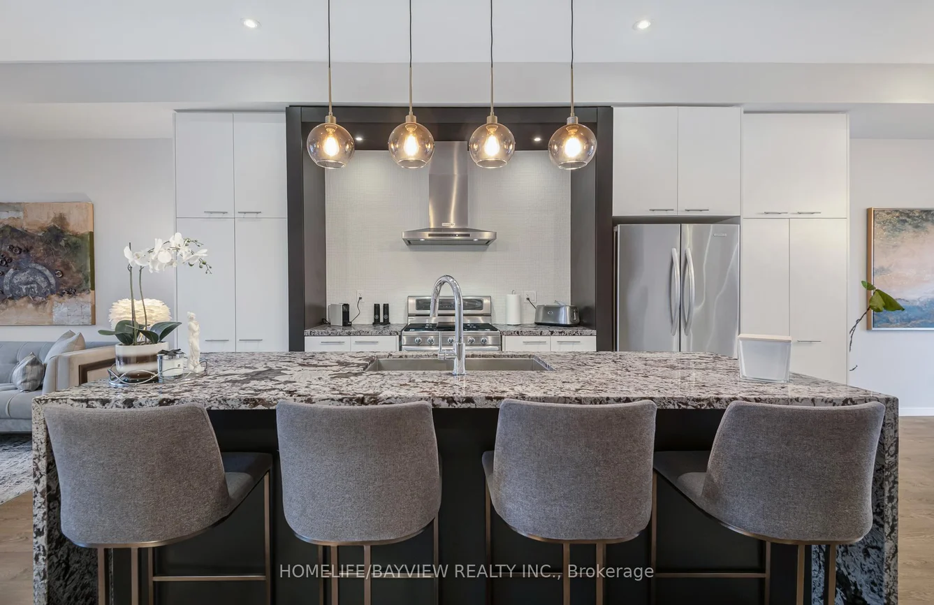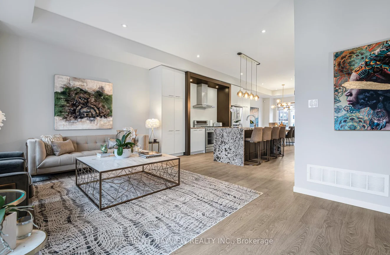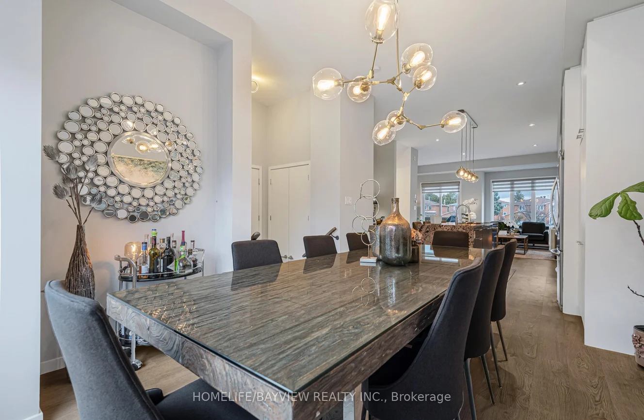 Welcome to this exceptional & modern townhouse in highly-sought Urban Towns at Bayview. Uniquely situated: ONE of only 6 north-south facing lots in the complex backing onto a parkette, unobstructed view- loads of sun & privacy. Luxurious, tastefully & professionally designed 4-bedroom, 4-bathroom home offers a perfect blend of contemporary style, functional living space, and serene natural surroundings - ideal for families or professionals seeking a vibrant community with peaceful retreat. Prime location- quick & easy access to grocery stores (Loblaws, Walmart), big box stores (Home Depot, Canadian Tire, Staples, Best Buy, Walmart), restaurants & movie theatre, minutes to Hwy 7, 407, 404, Go Train Stn, Parks, Community Centre. Highly rated schools district. Step inside to discover an open-concept main floor with 10' ceilings, abundant natural light, sleek finishes, and quality craftsmanship throughout. The generous living and dining areas provide the perfect backdrop for everyday living and entertaining, flowing seamlessly into a well-appointed kitchen with stylish cabinetry, premium appliances, and plenty of storage. Convenient main floor access to balcony- with gas line for BBQ. Upstairs & lower level feature 9' ceiling with spacious bedrooms & ample storage space with the cherry on top of an upstairs laundry room. The sweet spot: the 4th bedroom & ensuite on the lower level (above grade) with walk out separate entrance(s) would serve well for multiple purposes: in-law/separate suite with income potential, perfect for multi-generational families, a bright & independent home office. One of the unique features of this remarkable home is that it overlooks a beautiful parkette, permanent & unobstructed view- no driveway in front and no house behind-more privacy & plenty of sunlight! Ask for fully furnished option -for true turn key-most furnishings avail for sale. Monthly CEF of $251.66 incl grounds maintenance: snow removal, salting, lawn care, visitor parking.