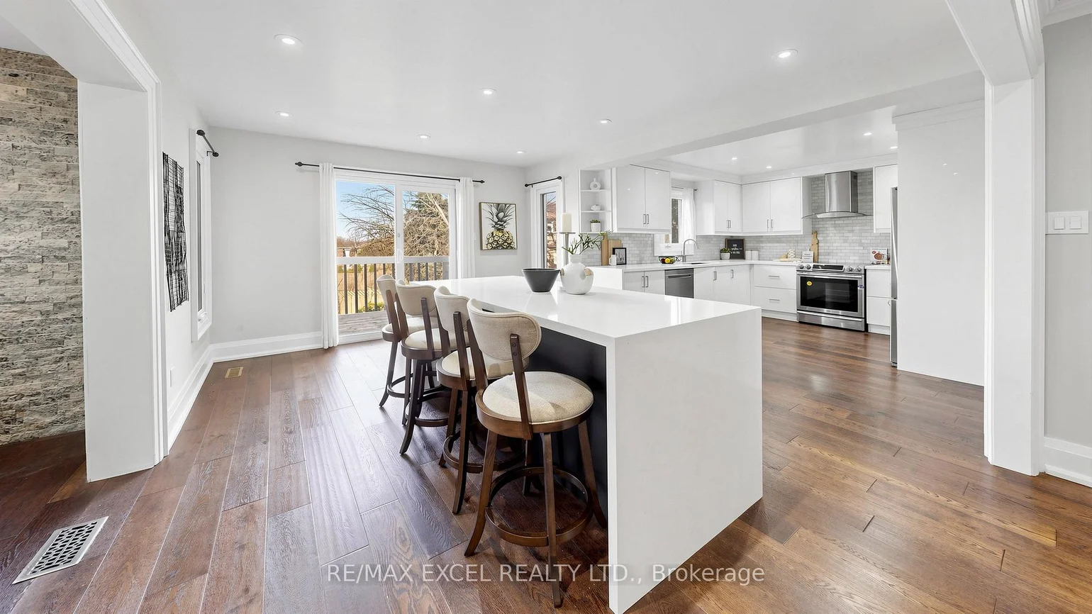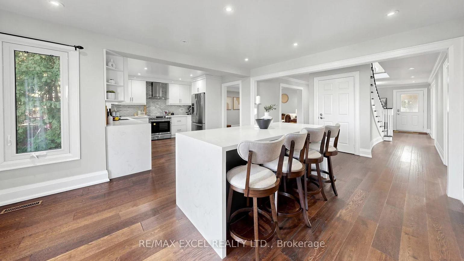 Stunning fully renovated 4+3 bedroom, 4-bath detached home in Richmond Hill's prestigious Doncrest neighbourhood. Situated on a premium pie-shaped lot with a deep, private backyard, offering approx. 4,600 sq.ft. of total living space (2,838 sq.ft. above grade per MPAC). Bright main floor with hardwood flooring, pot lights, and large windows. Modern kitchen with granite countertops, stainless steel appliances, and walkout to raised deck. Open-concept living and dining areas combined with a comfortable family room and fireplace. Upper level features 4 spacious bedrooms, including a primary suite with walk-in closet and upgraded ensuite with freestanding tub, glass shower, and double vanity. Additional sitting area ideal for office or lounge space. Finished walkout basement with separate entrance, full kitchen, 3 bedrooms, bathroom, and large recreation area-perfect for in-law suite or income potential. Excellent location close to Christ the King CES, within St. Robert CHS (IB) boundary, and minutes to Hwy7, 404, 407, shopping, restaurants, and parks.
