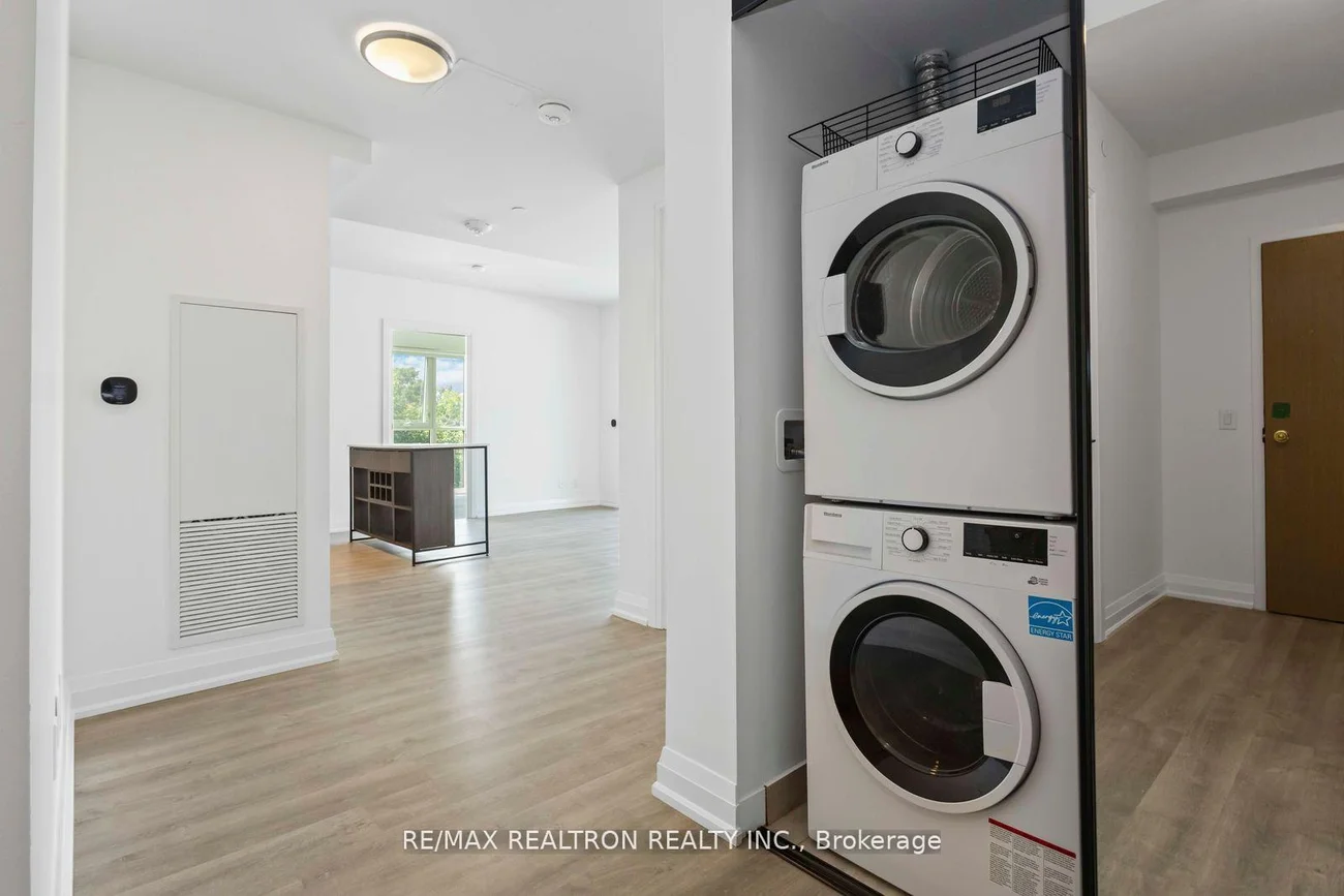 Perfectly Situated condo at Danforth & Main, Highly functional square lay out features with two seperate generous bedrooms and two full bathrooms. This unit consist of just under 900 square feet with 193 Square feet balcony, 9 feet high ceilings, and windows floor to ceiling, bringing vast of natural light in. This unit faces the South-West corner steps to public transit with Subway across the street. Enjoy the shops and farmers market, resturants, and parks near by. Further South you can enjoy the beaches, you have the usage of the building amenities, concierge, gym, party-room, visitors parking, and digital system. This unit has a parking space and bicycle storage locker.9 Feet ceilings, wide plank laminate floorings throughout quartz kitchen counter top, S/S appliances, fridge, stove, oven, microwave. Kitchen island with wine wrack, and stacked washer & dryer.