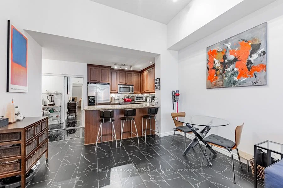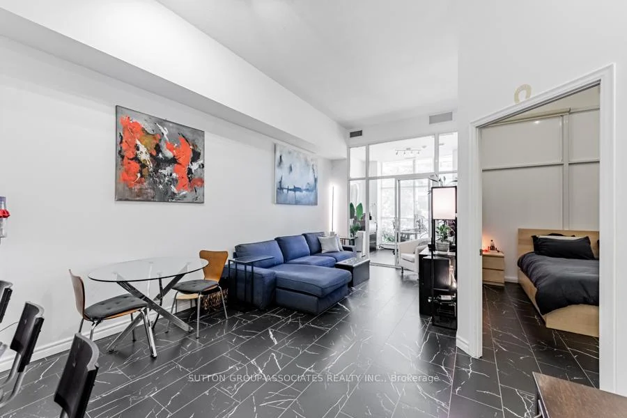 Live/work storefront condo facing Fleet Street, offering easy access and excellent visibility for your business. This dual-zoned unit is perfect for small businesses or office use. Welcome to West Harbour City! This rarely available, south-facing unit features a charming and well-appointed layout with 1 bedroom and an office space that feels like home. The spectacular floor plan includes a bright and spacious open concept design with soaring 11-foot ceilings and two separate walk-outs: one to Fleet Street and the other to the condo building. The functional kitchen is complete with a built-in breakfast bar and stainless steel appliances. The generously sized front office adds to the unit's practicality.The building boasts excellent amenities, including an indoor pool, fitness center, sauna, rooftop patio, and more! Ideally situated in a highly desirable neighborhood in the heart of downtown Toronto, the unit spans 814 sq. ft. as per the floor plan. **Extras:** Steps away from the lake, Farm Boy, Loblaws, TTC, schools, shops, restaurants, parks, Harbourfront, and quick access to the highway and more! The unit has recently undergone updates, including brand new Italian porcelanato tile installed throughout.