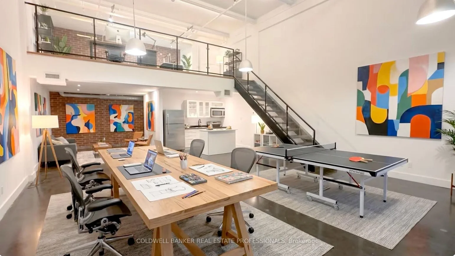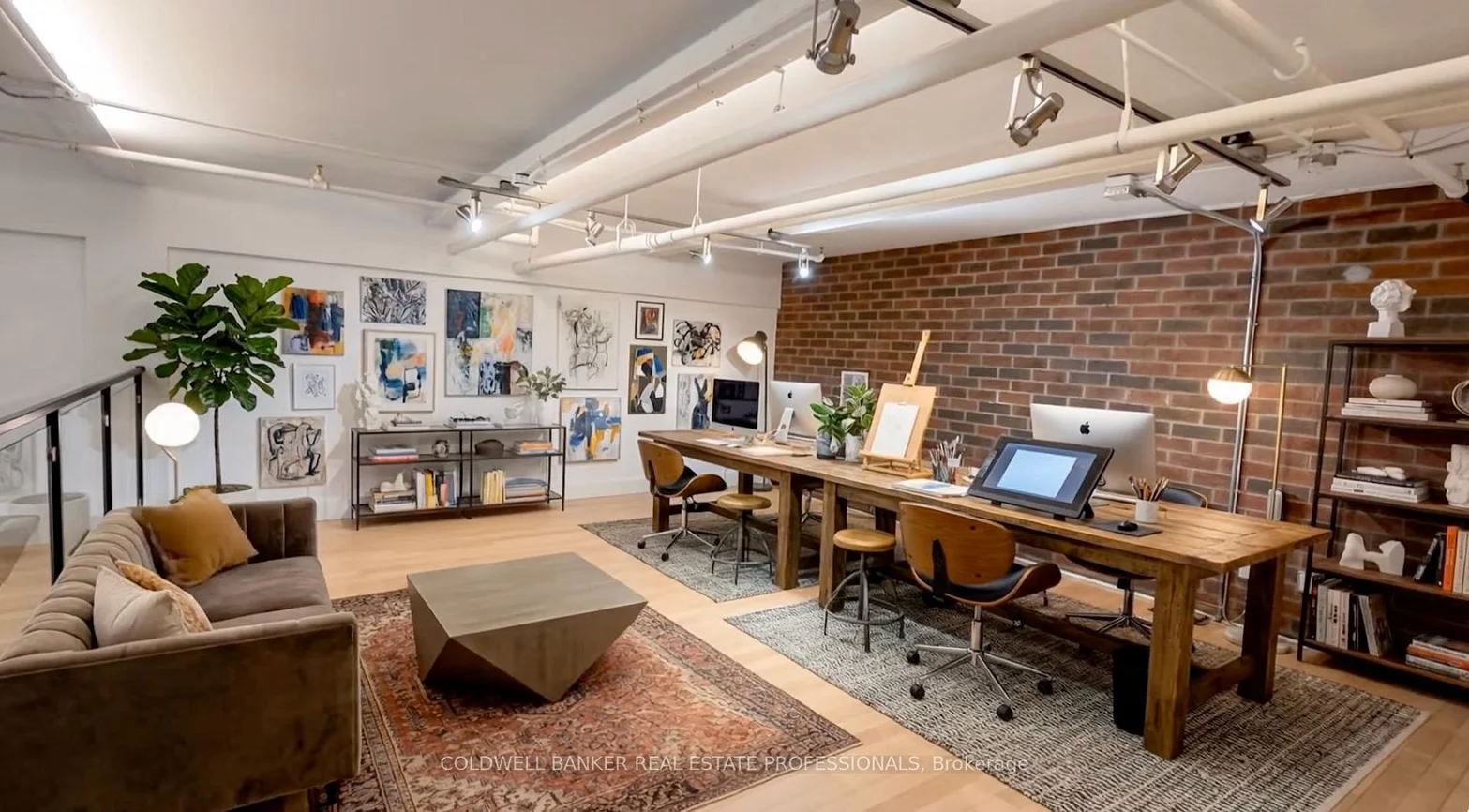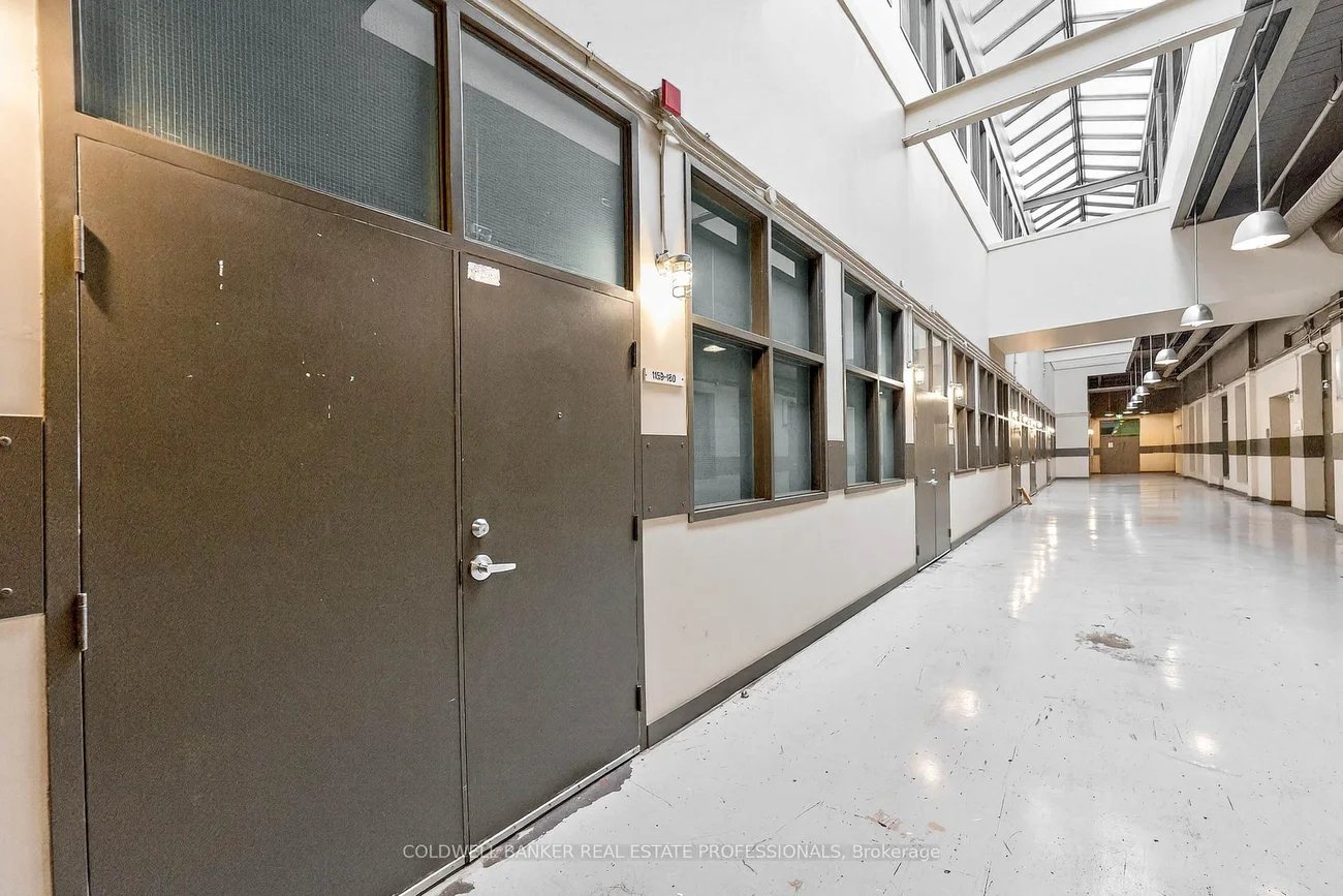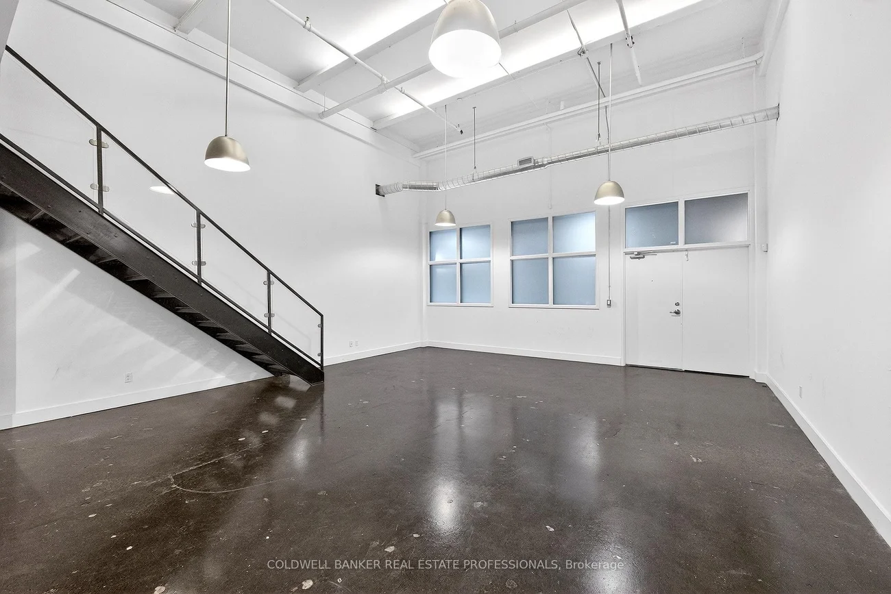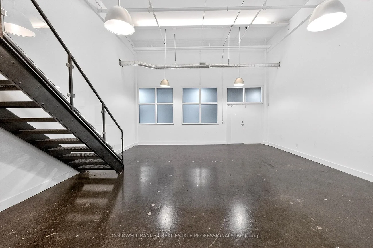 Exceptional commercial studio opportunity within the iconic i-Zone Condos, one of Toronto's most established and creative industrial conversions. This I1-zoned, commercial unit offers an inspiring environment for a wide range of permitted uses including artist studio, photography and film studio, music and sound production, content creation, influencer and social media studio, marketing or design office, beauty boutique, hair, makeup or nail studio and other creative or light industrial uses (buyer to verify permitted uses).The space features classic industrial character with soaring 17-foot ceiling height, exposed brick elements, and durable concrete flooring, creating an authentic warehouse aesthetic ideal for creative production and client-facing businesses. Double door access and shared use of two truck-level loading docks provide excellent functionality for filming equipment, product distribution, installations, or studio build-outs. Located within a professionally managed building offering secure entry, security cameras, and access to a large multi-purpose meeting room with rooftop deck, this unit benefits from strong infrastructure and a vibrant creative community. Excellent transit access with nearby TTC bus and streetcar routes, and quick connectivity to the DVP, Gardiner Expressway, and Lakeshore Boulevard. Situated in the heart of South Riverdale / Leslieville, surrounded by cafes, restaurants, banks, shops, and essential services.A rare opportunity to secure true industrial-zoned creative space in a tightly held downtown location where commercial inventory continues to diminish. Virtual staging shown are Artist concepts renderings only to help potential use and layout.