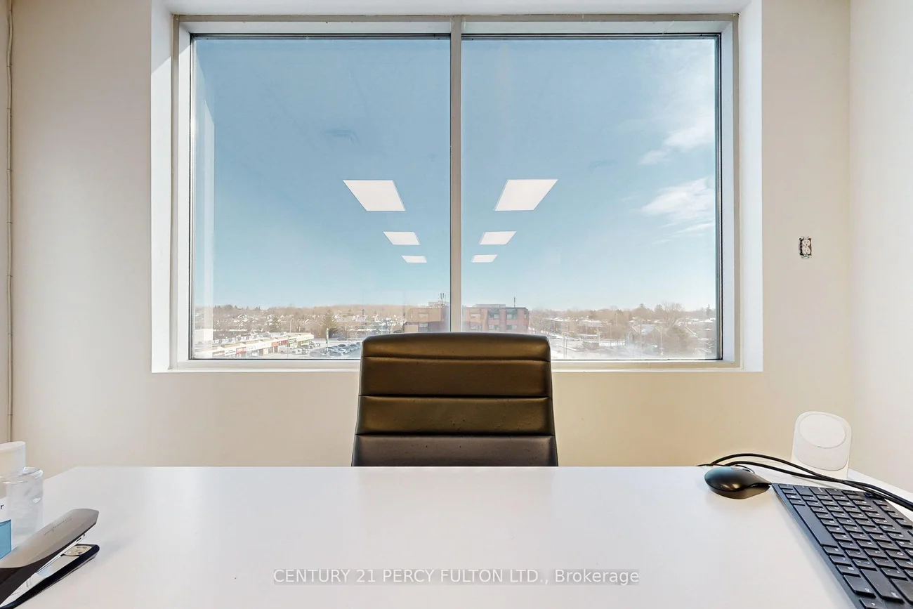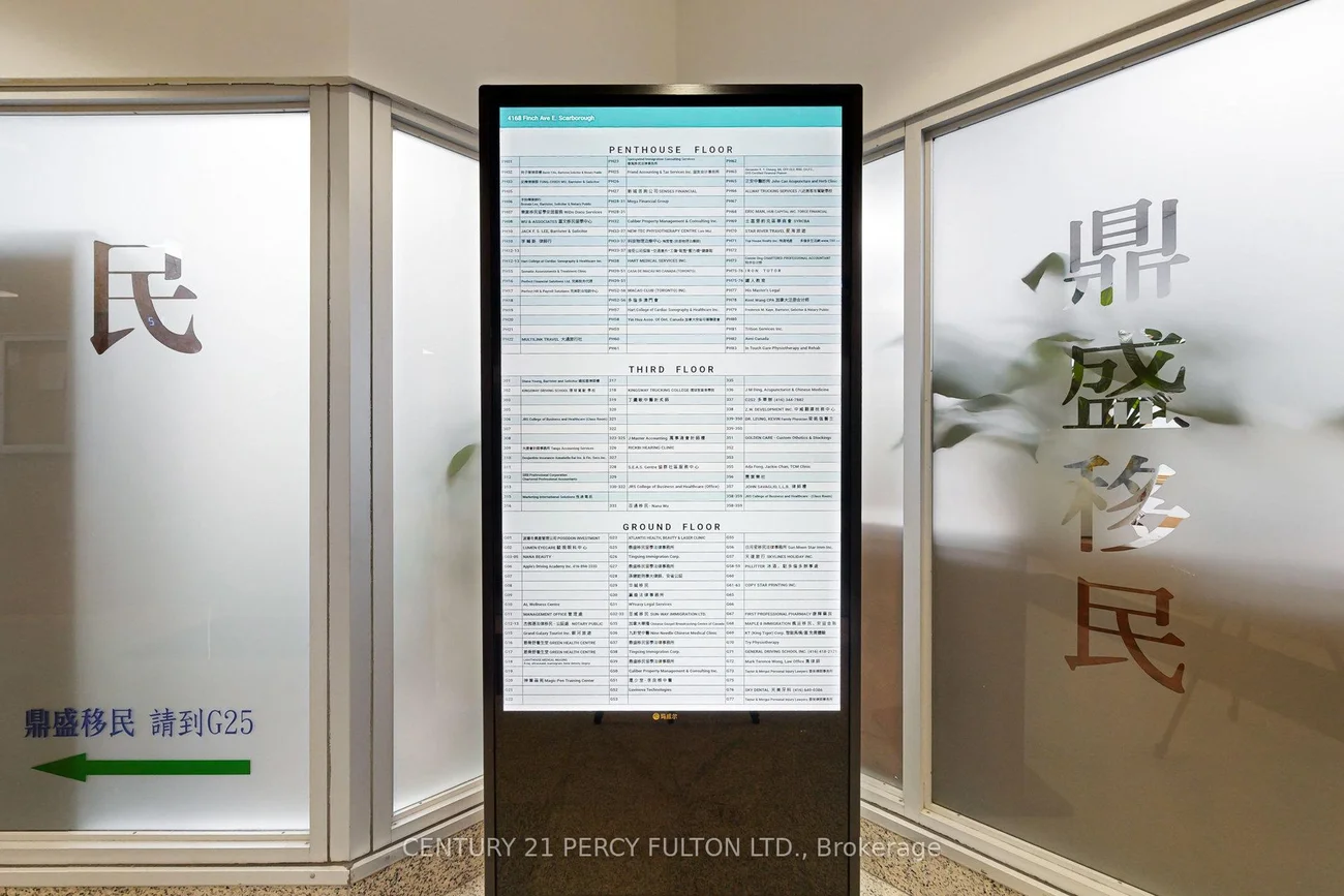 Rare Penthouse professional suite (594 SF) at 4168 Finch Ave East. This turn-key office features upgraded neutral laminate flooring, 8ft ceilings, and an enhanced soundproof wall for maximum privacy. Large East-facing windows offer bright views of a high-traffic plaza anchored by Tim Hortons, restaurants, and retail. Situated on a prestigious floor alongside established legal and medical practices, the unit includes a digital building directory, key-access washrooms on every floor, ample underground parking, and elevator access. Unbeatable connectivity-steps to TTC bus stops and minutes to Hwy 401 and 404. Ideal for professional services requiring a high-profile, accessible location.