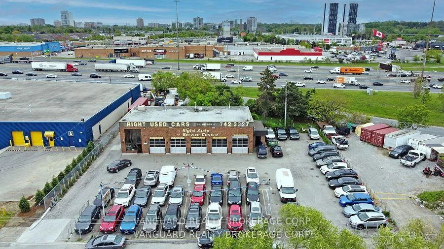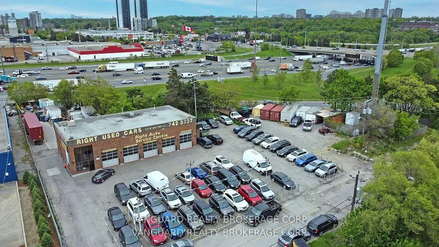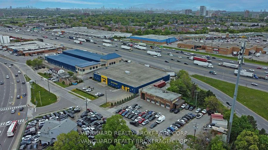 Rare Highway 401 direct maximum exposure, freestanding building with exceptional zoning allowances, VTB available current mechanic use, used car lot, outside storage facility.Excess land available, Bell Tower long-term tenant, existing mechanic equipment available at additional cost. Mins to 400 series highways , Pearson Int Airport, TTC at steps.