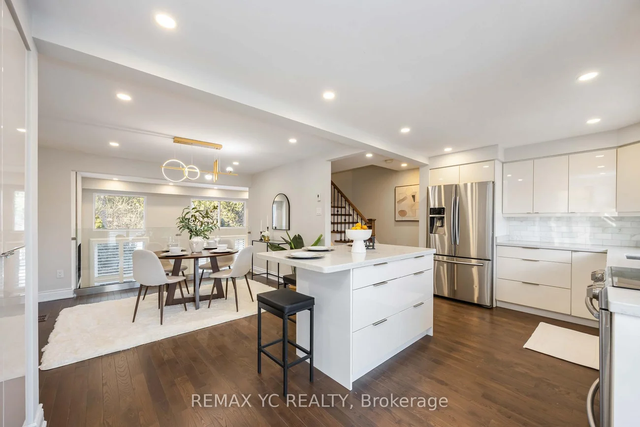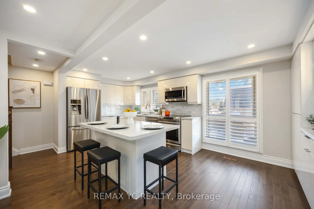 A rare opportunity to own one of the best end-unit townhomes in the complex. Fully renovated with refined finishes throughout and freshly painted throughout, this home offers the perfect balance of style, comfort and functionality. The kitchen is designed for both everyday living and entertaining, seamlessly flowing into the dining area and overlooking a rare, open backyard framed by mature trees. The unobstructed view and added privacy truly set this home apart. The living room impresses with soaring ceilings and a custom feature wall complete with a sleek electric fireplace, built-in shelving and integrated TV space. Spacious layout. Thoughtful upgrades. Exceptional value. Ideally located close to highways, shopping, schools, parks and all major amenities. Move-in ready and exceptionally well cared for. A standout opportunity within the community.