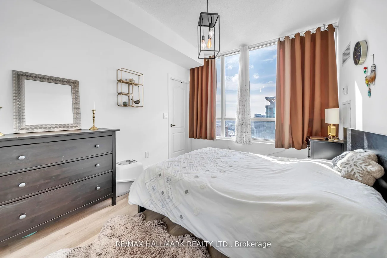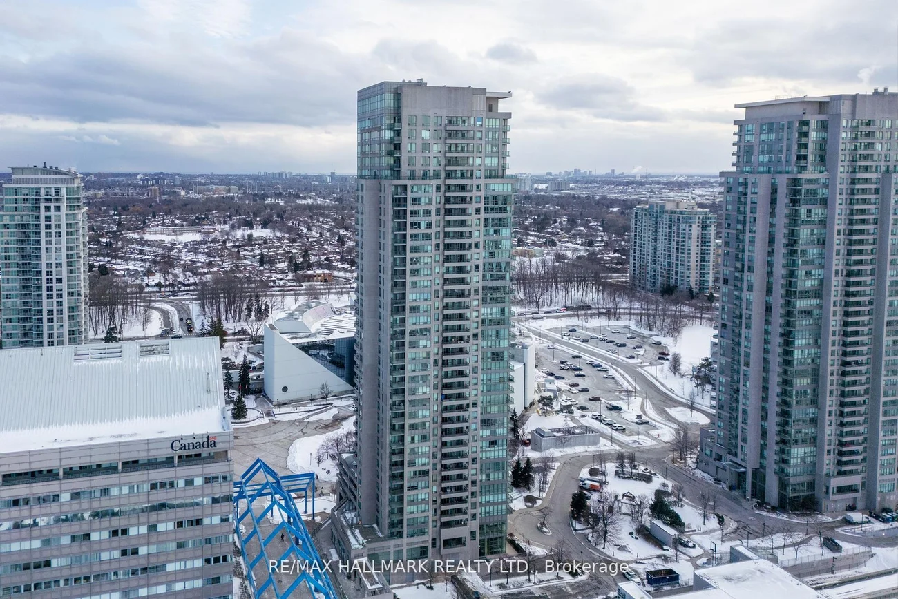 Stunning Corner Penthouse Completely Transformed In 2025 With Upscale Finishes And Quality Upgrades Throughout. This Bright Upper-Level Corner Suite Offers 2 Large Bedrooms Plus A Fully Enclosed Den With Door, Ideal As A Third Bedroom, Nursery, Or Quiet Home Office. Expansive Floor-To-Ceiling Windows Fill The Space With Natural Light While Framing Beautiful City Views With Distant CN Tower And Lake Ontario Sightlines. Enjoy Fresh Air And Skyline Views From The Private Corner Balcony. The Modern Open-Concept Kitchen Showcases Sleek Cabinetry, New Countertops, And Stainless Steel Appliances Including A Quad-Door Fridge, Electric Range, Hood Microwave, And Dishwasher, Overlooking Spacious Living And Dining Areas Perfect For Daily Living Or Entertaining Guests. Both Bathrooms Have Been Elegantly Updated With Contemporary Vanities And LED Mirrors. New Flooring, Upgraded Interior Doors, Refreshed Walls, Premium Light Fixtures, Stylish Window Coverings, In-Suite Stacked Washer & Dryer, And Two Separate Air Conditioning Systems Add Comfort And Convenience. Includes 1 Parking Space And 1 Locker.Situated In The Sought-After Monarch Equinox With Direct Indoor Access To Scarborough Town Centre, Toronto Transit Commission, And GO Transit, Minutes To Highway 401 And Near University of Toronto Scarborough And Centennial College. Residents Enjoy First-Class Amenities Including 24-Hour Concierge, Indoor Pool, Jacuzzi, Fitness Centre, Home Theatre, Virtual Golf, Billiards, Table Tennis, Card Room, Library, Party Room, Guest Suites, Car Wash, And Bicycle Storage.