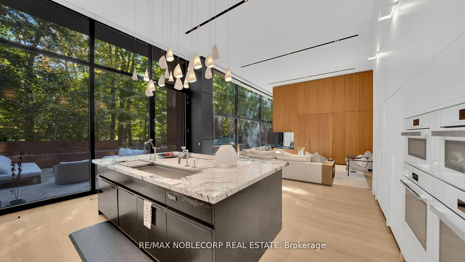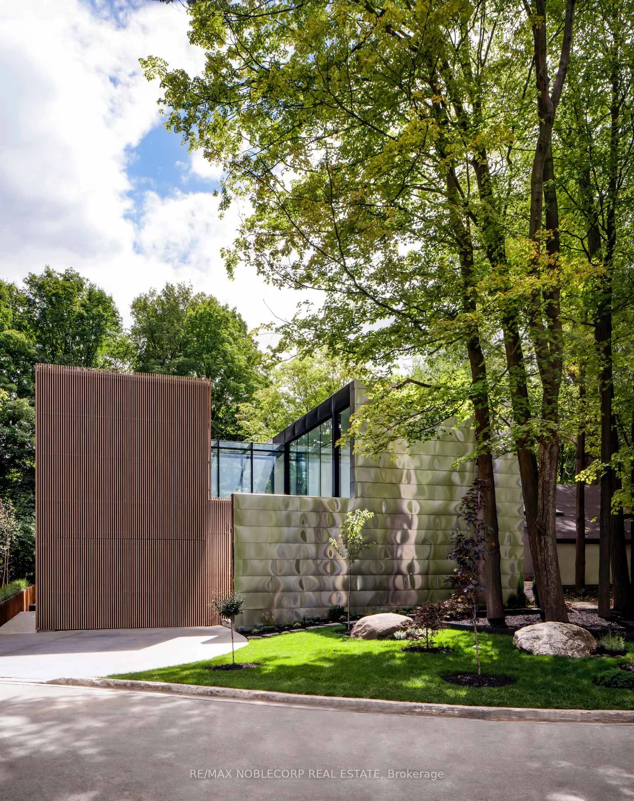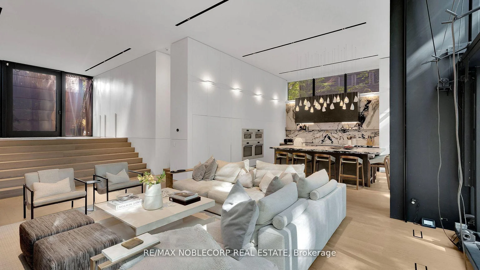 Inspired by the precision and versatility of a Swiss Army knife, this internationally award-winning, architecturally significant residence offers over 6,000 sq.ft. of luxury living on a private, forested ravine cul-de-sac. Designed with dynamic multi-level functionality, its dual wings are connected by a sleek glass bridge and clad in a striking blend of reflective titanium, simulated walnut, and rich black Palisade panels. A descending entrance introduces the main living area where a panoramic fireplace anchors open-concept spaces extending to the outdoors through a dramatic, folding glass hangar door. Every detail is engineered for seamless living and entertaining from the indoor/outdoor dining areas, hidden wine closet, and wet bar to the amenity-rich lower level featuring a full kitchen, gym, and theatre. The primary suite is a true retreat with his-and-hers closets, a spa-inspired ensuite, and a private balcony overlooking the ravine. Outside, a tiered infinity pool, integrated outdoor kitchen, and fire table are enveloped by nature, creating a breathtaking, resort-like oasis.