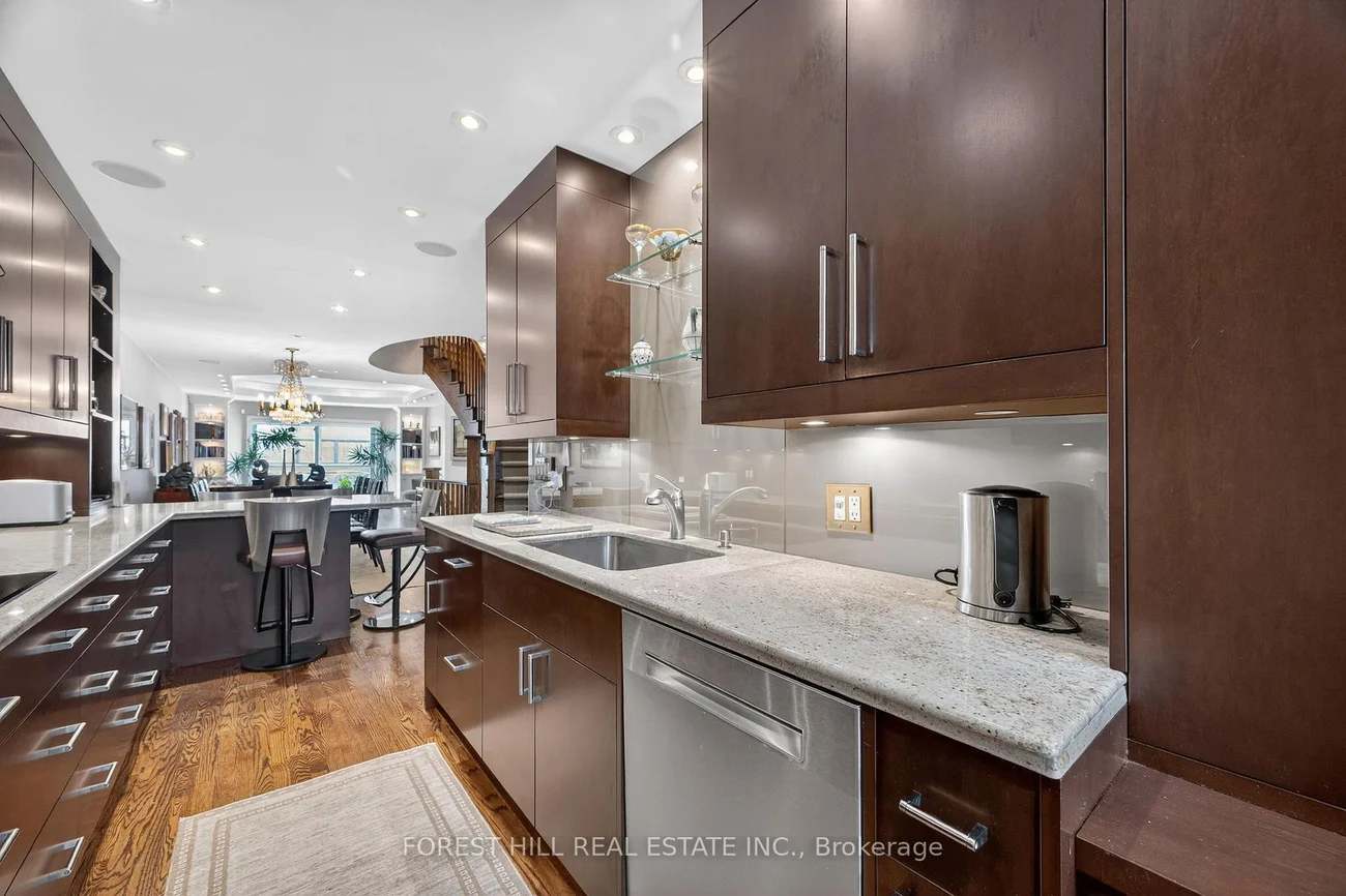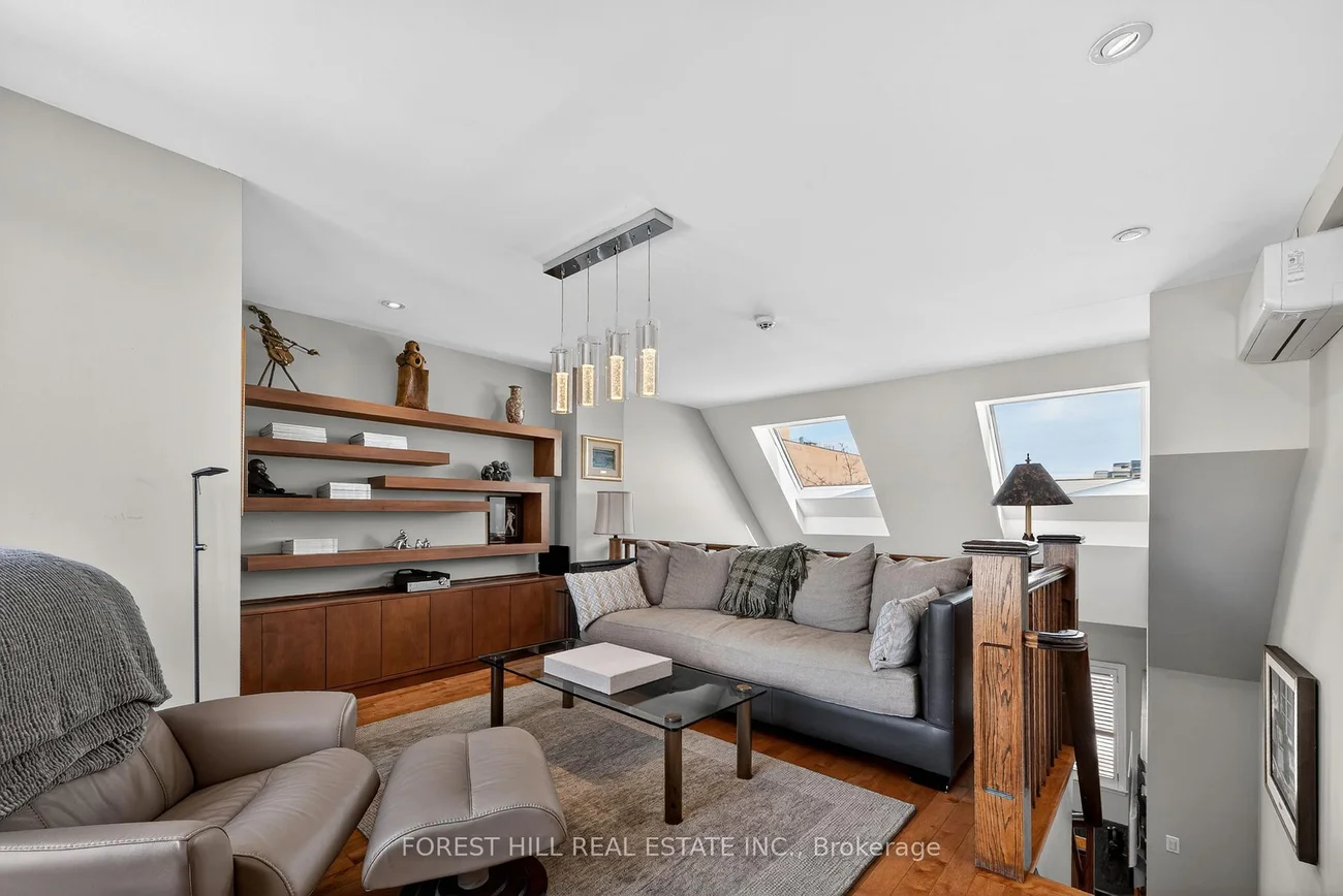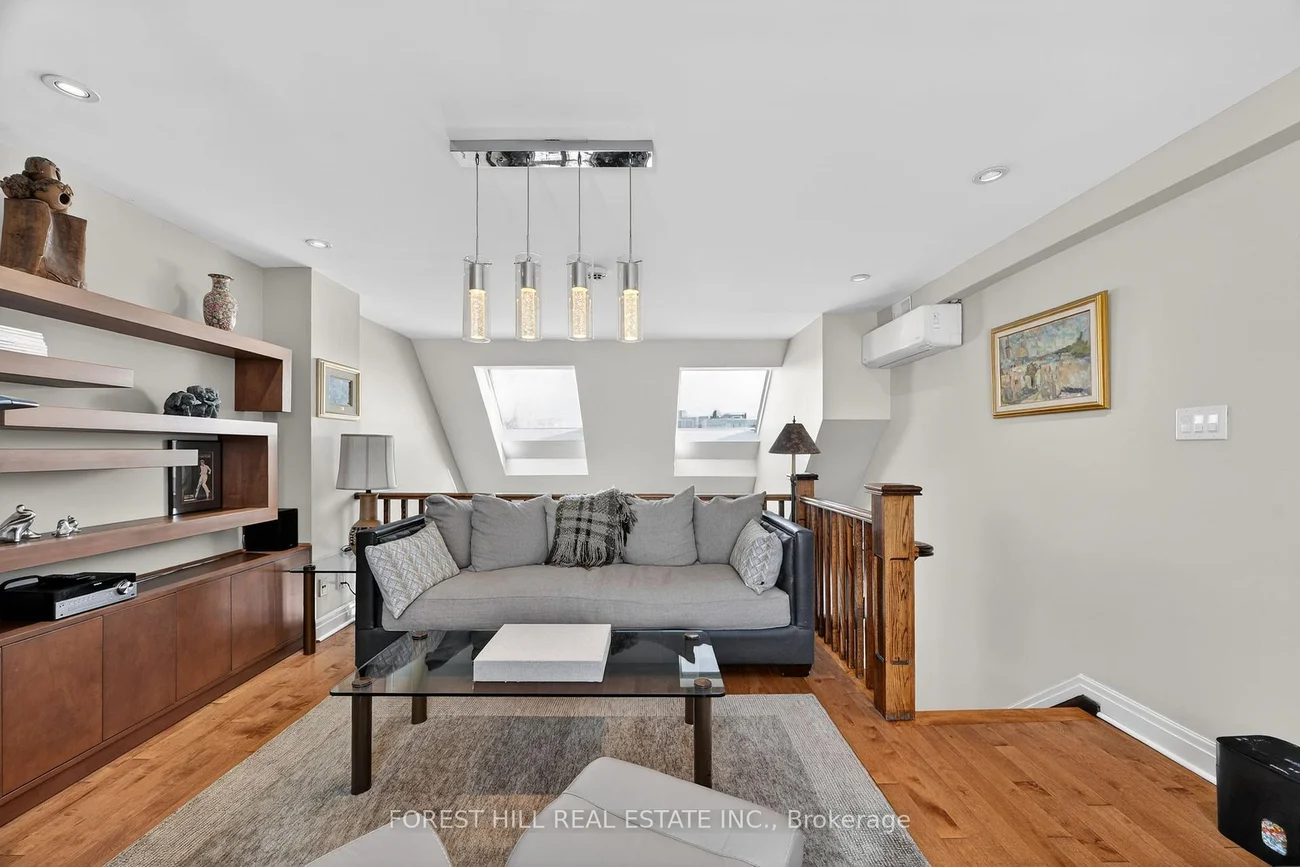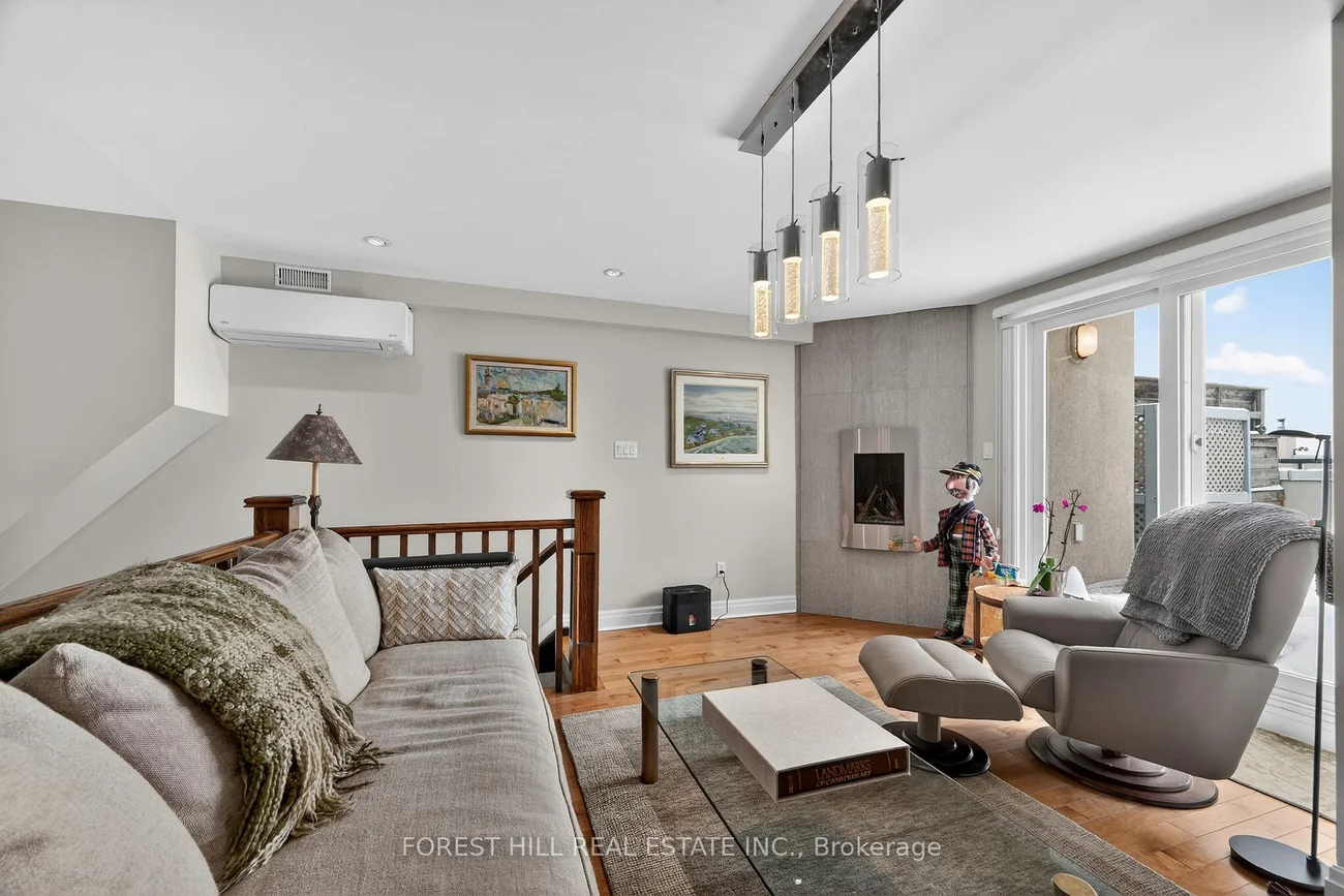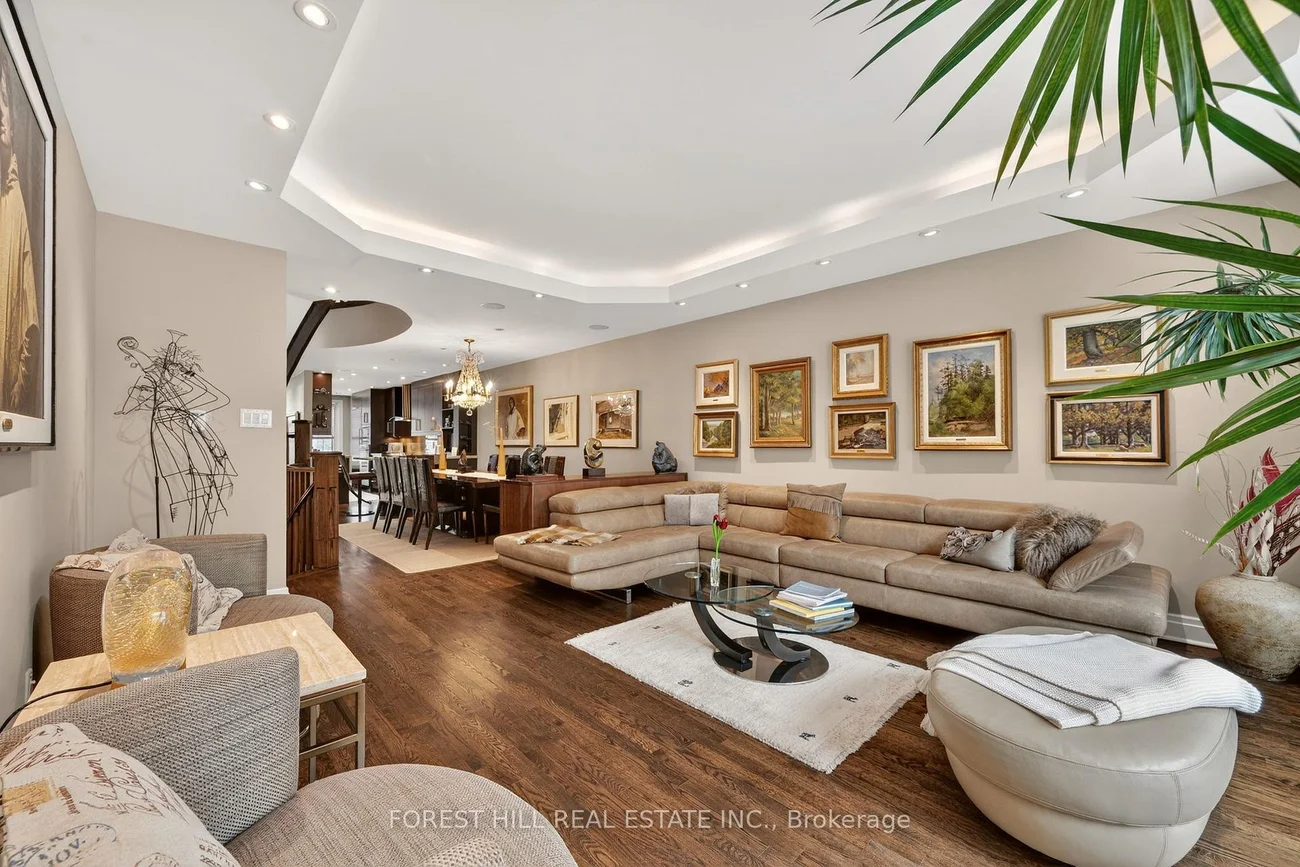 Welcome to 252 Spadina Road, a fully updated freehold 3+1 bedroom, 5 bathroom townhome in prestigious Castle Hill at the foot of Casa Loma. Offering over 3,400 sq ft of finished living space across four levels, this exceptional residence blends timeless architecture with refined contemporary design. Overlooking Casa Loma, this move-in-ready home delivers rare scale and sophistication in one of Toronto's most iconic neighbourhoods.The main level showcases soaring and coffered ceilings, crown moulding throughout, wide-plank oak floors, custom built-ins, pot lights, California shutters, and integrated surround sound. The open-concept living and dining areas are designed for elevated entertaining. A custom chef's galley-style kitchen features premium appliances, abundant cabinetry, and a breakfast bar, with a seamless walkout to a private terrace for effortless indoor-outdoor living.A striking panoramic design PVE elevator provides access from the basement to the third floor. The second level offers a spacious family room with wood-burning fireplace and built-ins, a well-sized bedroom, full bath, and convenient second-floor laundry.The third floor features a dramatic two-storey primary retreat with 17-foot ceilings and skylights. A loft-style upper lounge leads to a private rooftop terrace. The suite includes a spa-inspired ensuite and his-and-hers walk-in closets with organizers. An additional bedroom with ensuite completes this level.The lower level offers an above-grade bedroom with large windows, full bath, private sauna, pantry, and flexible living space, plus direct access to a spacious two-car garage with ample storage.Freehold with association fee covering landscaping and snow removal. Steps to Dupont Subway Station, Casa Loma, Yorkville, Forest Hill Village, parks, and top private schools including UCC and BSS.