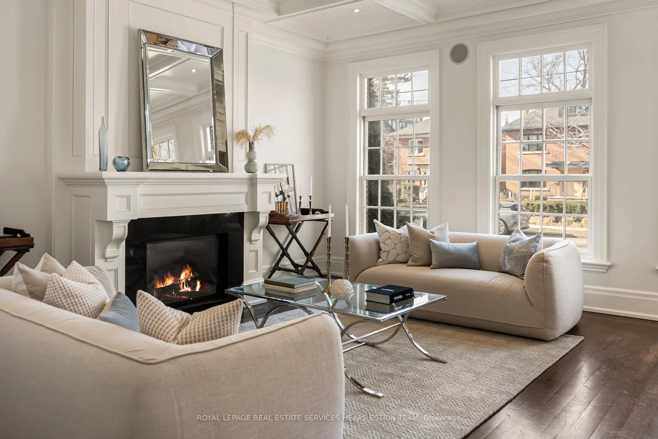 This exquisite residence is a study in refined elegance, blending French-inspired interiors with modern luxury and ideally situated in the heart of coveted Moore Park. Offering over 5,600 square feet of sophisticated living space, the home features an elegant staircase, soaring 10-foot ceilings, and expansive windows reminiscent of classic European architecture. The breathtaking living and dining room showcases coffered ceilings, large windows, and a striking fireplace, while the sun-filled family room and classic chef's kitchen at the rear open onto an expansive south-facing garden. A private elevator provides seamless access to all levels. The second floor includes a laundry room and three generously sized bedrooms, including a serene suite with ensuite and walk-in closet, while the remaining two share a beautifully appointed family bathroom with a separate WC. The third level is dedicated to an extraordinary primary retreat complete with a spacious seating area, romantic fireplace, custom closet, spa-like ensuite, and a private office or potential nursery. The finished lower level offers additional living space with a recreation room/gym featuring a gas fireplace and walkout to the backyard, along with a wine cellar, ample storage, a full family bathroom, and a private caregiver or in-law suite with its own dedicated bathroom. Walking distance to Whitney PS and OLPH, close to top private schools, with easy access downtown and to major highways, this rare offering combines tranquillity and convenience. Potential for garage subject to Buyer's due diligence and municipal approvals.