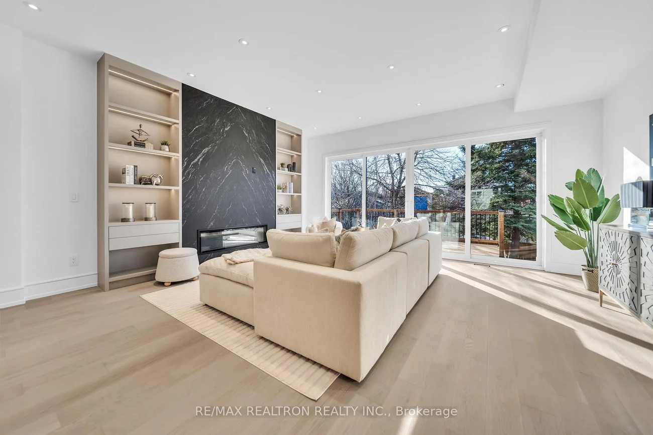 Welcome to 17 Lanark. A stunning blend of modern design, exceptional craftsmanship & sun-filled living spaces, this beautifully built home offers over 3,500 sqft of thoughtfully designed living space in one of Toronto's most desirable neighbourhoods. Featuring a striking limestone façade, elegant white oak flooring, expansive floor-to-ceiling windows, & five skylights, the home is flooded W/ natural light. The main floor features 10-foot ceilings & a seamless open-concept layout designed for both everyday living & effortless entertaining. The extra-large chef's kitchen, complete W/ high-end Monogram stove & B/I fridge & custom cabinetry, & a dramatic oversized centre island, is perfect for gathering. The warm, inviting family room W/ a fireplace, integrated shelving, & a walkout to the deck & fully fenced backyard creates the ideal indoor-outdoor lifestyle. Smart lighting throughout the home enhances both convenience & ambiance, allowing for modern, customizable living. On the second floor you find the luxurious primary retreat featuring a large walk-in closet & a spa-inspired ensuite W/ custom vanities designed for ultimate relaxation. Generous windows throughout the upper level bring in abundant natural light. The lower level is a rare highlight, offering a fully legal secondary suite W/ its own private laundry & walkout to the backyard-perfect for extended family, guests, or rental income. With soaring 12ft ceilings & large floor-to-ceiling windows, the space is exceptionally bright & open. The suite also features a full kitchen, along W/ over 200 sqft of private walk-up space, providing excellent outdoor space for occupants. A built-in garage W/ mudroom entry B/I closets and a dog wash for everyday convenience and functionality. Enjoy being steps from the Eglinton LRT, top-rated schools & close to shops, restaurants & parks. Don't miss your chance to call this exceptional home yours-a rare offering in a vibrant, growing community.