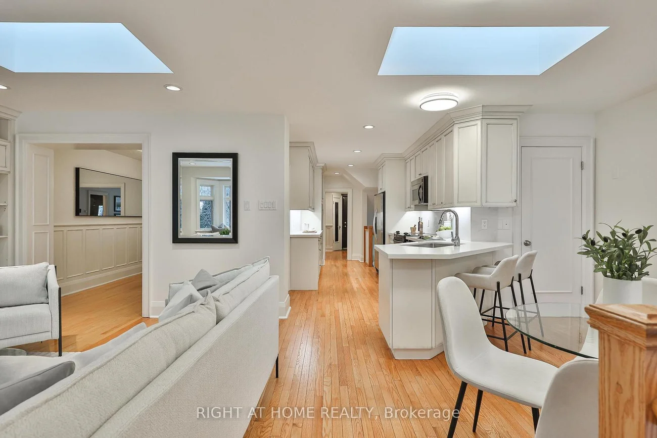 Renovated 2 Storey South Leaside Detached home, with Large Main Floor Family Room Addition, main floor Powder Guest Washroom, Large Side Door Addition with large Closet and storage space. Modern Kitchen with new Quartz Counter, Backsplash, UnderCounter Lighting. Opens to spacious Sunlit Family Room With 2 Skylights & Window Seat. Walk-Out from Kitchen to Serene Garden with Lily Goldfish Pond, and Babbling Waterfall. Opportunity to Expand 2nd Floor, by Adding Large 4th Bedroom Above Main Floor Family Room Addition. Backyard widens gracefully to 33.5ft. Large Finished Lower Level Addition with Rec. Room and Office Space, High Ceilings and Walk-Up to Backyard. 4th bedroom in Lower Level. Beautiful Large 3 piece Basement Bathroom, with in-floor heating. Highly Sought -After, Prime Leaside Location, 5 minute walk to Bessborough Public School, Leaside High School, and Leaside Subway Station and shops on Bayview.