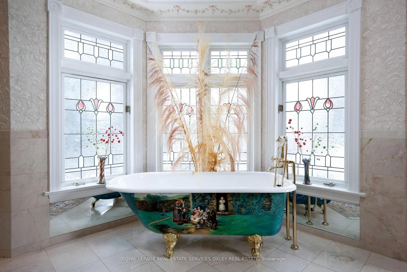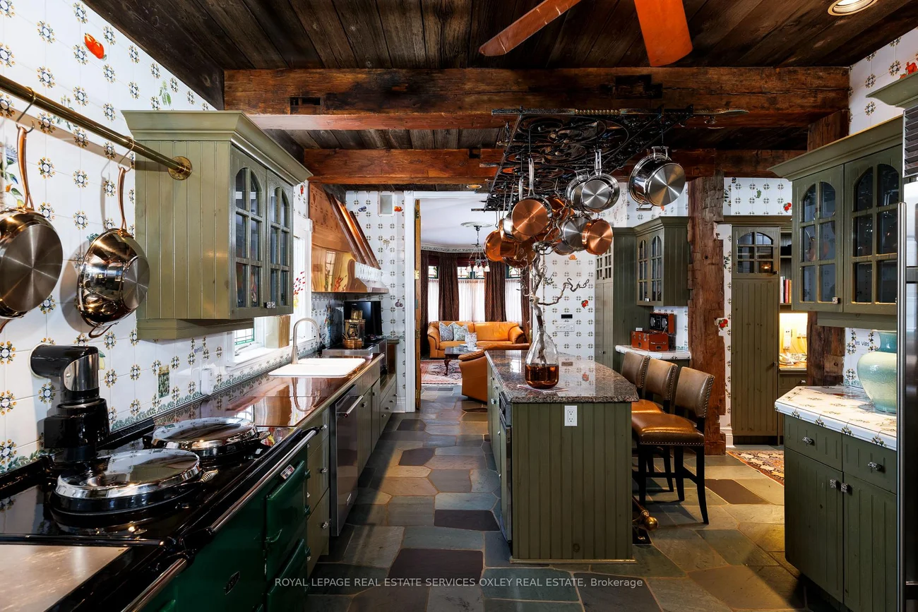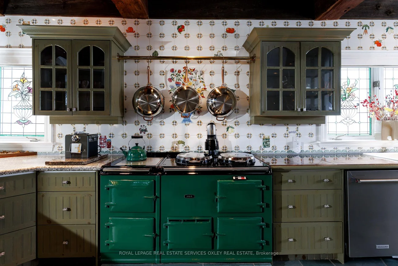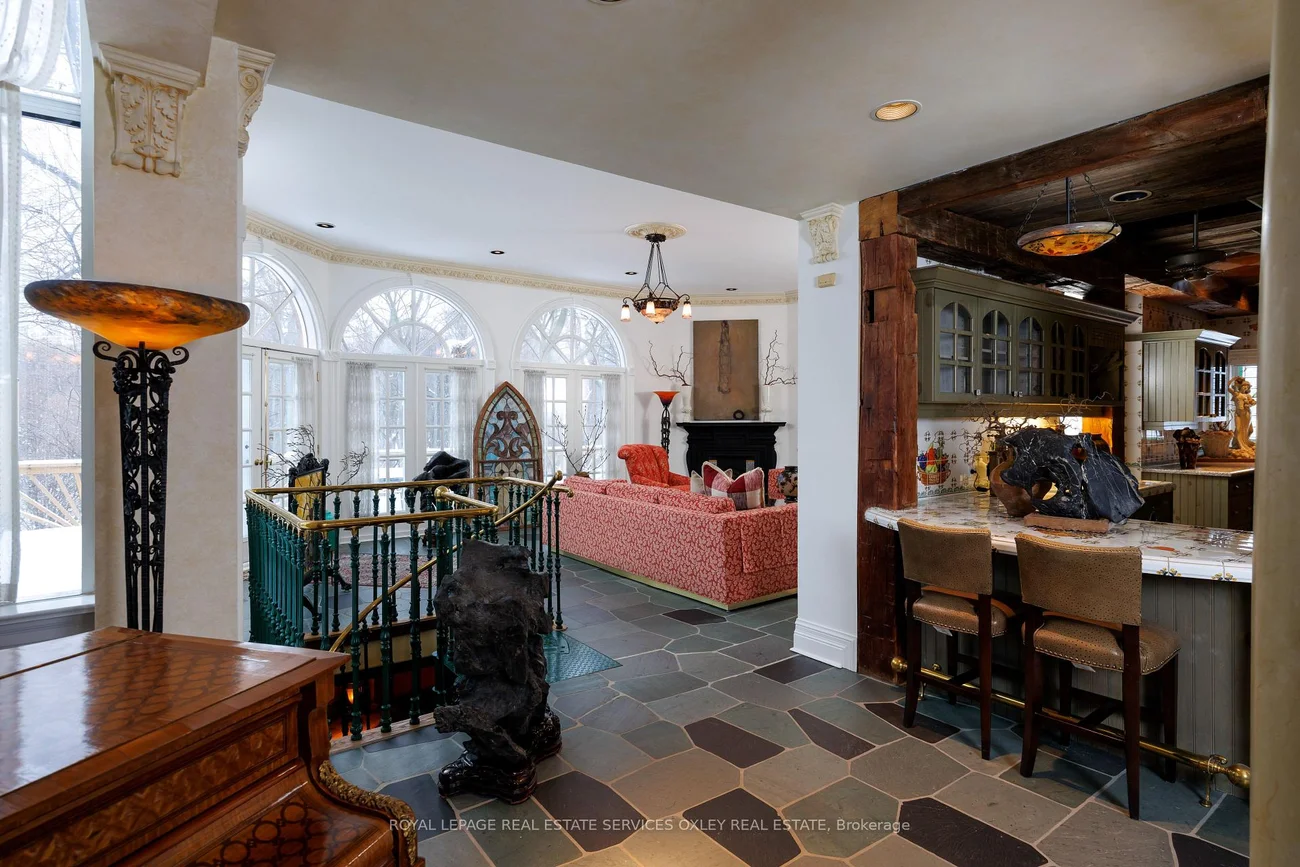 Tucked into one of Toronto's most prestigious pockets, 5 Castle Frank Cres is a truly one-of-a-kind residence that blends old world elegance w/ modern scale & functionality. Set on an exceptional, deep ravine lot, this home offers 7,000 sq ft of beautifully curated living space, surrounded by lush greenery & complete privacy in the heart of the city. Built in 1910, the home carries a rich architectural presence that has been thoughtfully maintained & enhanced over time. The interior reflects a distinctly European inspired aesthetic, where grand principal rms, exposed timber beams, & intricate craftsmanship create a warm & timeless atmosphere. Natural stone flooring compliment key areas of the home, while stained and leaded glass details add a brilliant touch of soft light throughout. The chef's kitchen is a true focal point, designed for both everyday living & entertaining. Outfitted w/ a classic AGA cast iron range, commercial grade appliances, a custom copper hood, hand painted tile backsplash, & a large central island w/ integrated warming drawer, the space blends character w/ functionality. Custom cabinetry, stone countertops, & a hanging wrought iron pot rack completes the grandiose of the kitchen, evoking a refined country estate feel in downtown Toronto. Signature features include 7 fireplaces w/ antique mantels, high ceilings, imported solid wood doors & a layout that offers both openness & defined living spaces. This 5 bedrm, 6 bathrm design is generous & well proportioned & is ideal for any family living at scale in an urban setting. Outside, the home transforms into a private retreat, w/ a lush ravine backdrop, expansive deck space, & complete seclusion from the hustle & bustle of the city. A garage w/ rare gated parking area for up to 5 vehicles further elevates the property, an exceptional amenity in the South Rosedale neighbourhood. Steps to Bloor Street, upscale shopping in Yorkville, the subway, & the DVP, the location offers unmatched convenience.