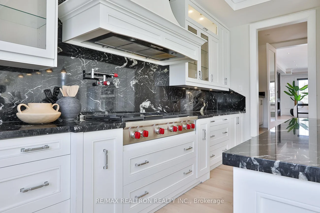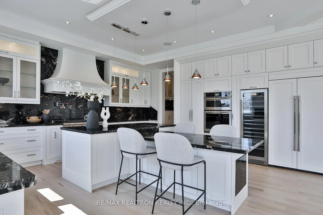 Luxurious Custom-Built Home with Elevator & Heated Driveway Premium Features Stunning custom-built residence offering nearly 6,300 sq. ft. of total living space (approx. 4,300 sq. ft. above grade plus a professionally finished walk-out basement). Designed with exceptional craftsmanship, high ceilings on all levels, and elegant architectural details including millwork, built-ins, and coffered ceilings.This home features a private 4-stop elevator, heated driveway and steps, and two kitchens on the main floor-a designer showcase kitchen alongside a fully equipped functional cooking kitchen-perfect for entertaining and everyday living. The open-concept kitchen and family room create an inviting space for gatherings.All bedrooms are generously sized and include private ensuites. The luxurious primary suite offers a 6-piece ensuite with heated floors, a fireplace, and a spacious walk-in closet with a large south-facing window.The bright walk-out lower level boasts heated floors, a home theatre with projector and screen, a wet bar, and high ceilings-ideal for recreation and entertaining. Convenient direct access from the garage to a mudroom enhances functionality.Additional highlights include:Premium appliances (Wolf 6-burner gas range with griddle, panelled fridge, built-in oven/microwave/dishwasher)Secondary kitchen with additional stove and microwavePot fillerGas fireplacesBuilt-in speakersCentral vacuumTwo washers & two dryersDual home automation systemsIdeally located close to shopping, parks, and top-rated schools.