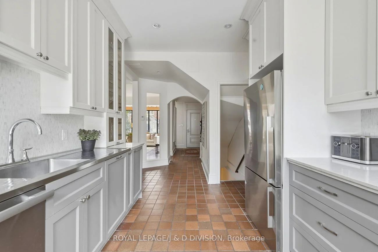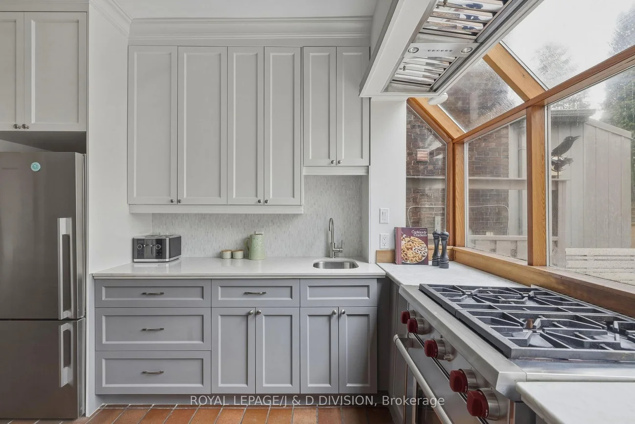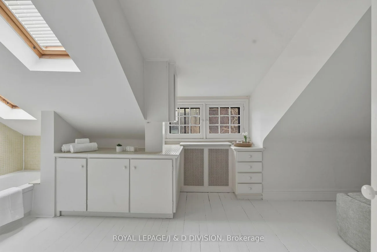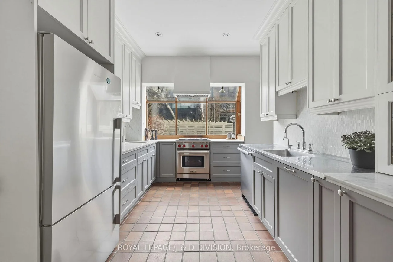 Perfectly positioned on a quiet, tree-lined street in the heart of the Annex - just steps to Yorkville - this exceptional fully detached 4-bed, 3-bath home blends timeless charm with light-filled, inviting living spaces. The open-concept main floor is designed for both everyday comfort and elegant entertaining, anchored by an expansive living and dining area. The extended living room showcases soaring ceilings, graceful archways, and a front wall of surround windows and skylights that flood the home with natural light. The spacious dining area easily accommodates large gatherings and opens via French doors to a beautiful backyard - once featured in Toronto Life. The thoughtfully updated kitchen offers classic shaker cabinetry, a soft marble backsplash, premium stainless-steel appliances, and a sleek prep counter for effortless cleanup. A secondary bar sink and abundant cabinetry add functionality, while a wide bump-out window frames serene views of the backyard. Upstairs, the second level offers 3 versatile rooms and a stylish main bath which serves as an ensuite to the main. A stunning library/family room features custom built-ins, triple closets, and a bay window with integrated storage. Additional rooms provide flexibility for bedrooms, office space, or a nursery, each with hardwood floors, large windows, and custom storage. The chic bathroom includes a jacuzzi soaker tub, designer tile, and marble vanity. The third floor forms a private gabled retreat with 2 additional rooms currently configured as a bedroom and dressing room with 4 pc ensuite bath. Outside, the fully fenced backyard is a private urban oasis with a shaded pergola filled with summer Hydrangeas and a patio - perfect for summer entertaining. Located within the coveted Jesse Ketchum school district and moments to Yorkville shopping, the ROM, Manulife Centre, Eataly, Bloor Street, and subway access, this rare Annex offering delivers sophisticated city living with the tranquility of a secluded street.