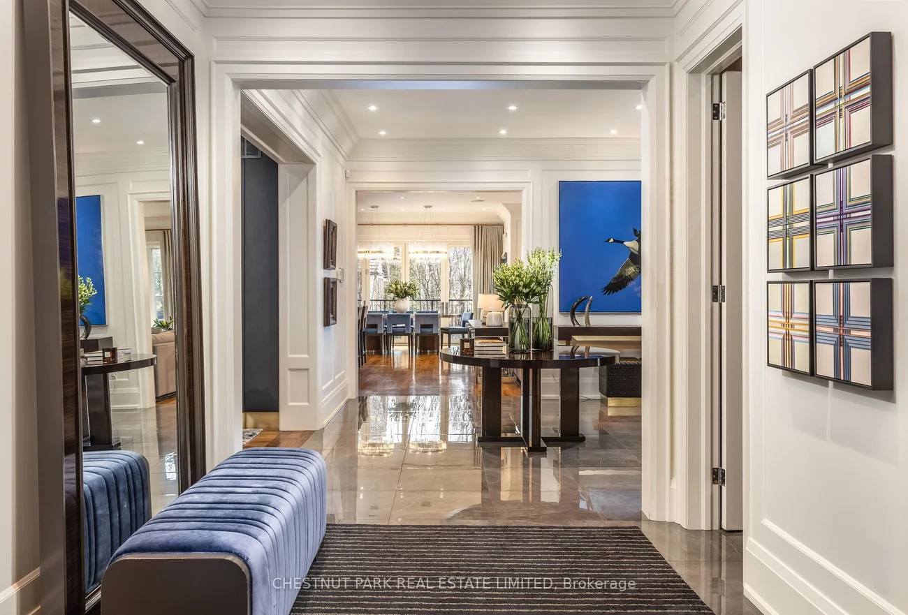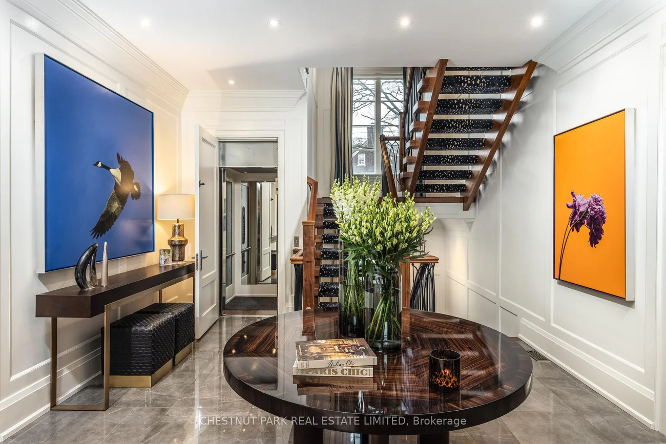 A rare Forest Hill offering, this custom residence showcases over 8,000 square feet of beautifully finished living space across five levels, all serviced by an elevator. Built in 2017 and extensively refined, the home offers exceptional scale, comfort, and craftsmanship. Grand principal rooms flow seamlessly for both everyday living and entertaining, anchored by a top-tier chef's kitchen, inviting family room, main floor library, dining room, and lounge with custom cabinetry and bar fridges. The second level features a sumptuous primary suite with his/her 3-piece and 5-piece ensuites and separate dressing rooms, along with four additional bedrooms, each with its own ensuite. Designed for complete lifestyle living, the lower level includes a home theatre, glass-enclosed gym, recreation room with bar, large wine cellar, and nanny suite. Outdoor living is equally impressive, with a stunning pool and hot tub, 2-piece washroom off the pool deck and cooking hub. An oversized double garage with pet spa and the convenience of a mud room completes this exceptional home, ideally located near top schools, parks, and local amenities.