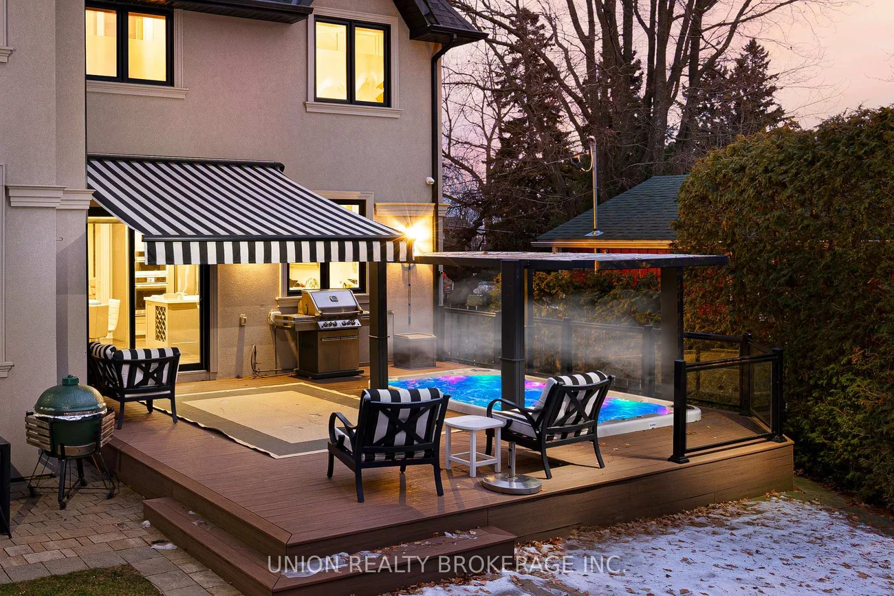 Custom built Bluffs home spanning over 4,000 sq. ft. of luxury! Set back on a generous 50 foot frontage, with landscaped grounds, an interlocked stone driveway offering ample parking, and a double car garage with epoxy flooring. Step into this pristine residence boasting thoughtful design, detailed millwork, and quality craftsmanship throughout. The welcoming foyer entry with high ceilings, elevates the home's interior appeal, opening up to an elegant living and dining area with ample closet space and a main floor powder room. The exquisite gourmet kitchen overlooks a main floor family room with a walkout to serene views of the private backyard providing an outdoor retreat, complete with composite decking, a retractable awning, SwimSpa, glass railings, and lush, low-maintenance landscape. Convenient direct access to the home from the garage, a separate side entrance that walks down to the completely finished lower is perfect for an in-law suite with an extra bedroom, or an extension of luxury living and entertaining. The upstairs landing is sun-filled with a skylight and leads to four spacious bedrooms including a grand primary, each with ensuite or semi-ensuite bath. A second-floor laundry room adds functionality and simplicity. Notable upgrades include a whole-home generator, advanced security and camera system, programmable lighting, central vac, triple sump pump with battery backup, and high-capacity HVAC. A rare opportunity to enjoy a peaceful, nature-filled lifestyle just steps to parkland and tennis courts. Minutes to Rosetta McClain Gardens, Kingston Road amenities, and top-rated schools including Chine Drive PS and R.H. King Academy.