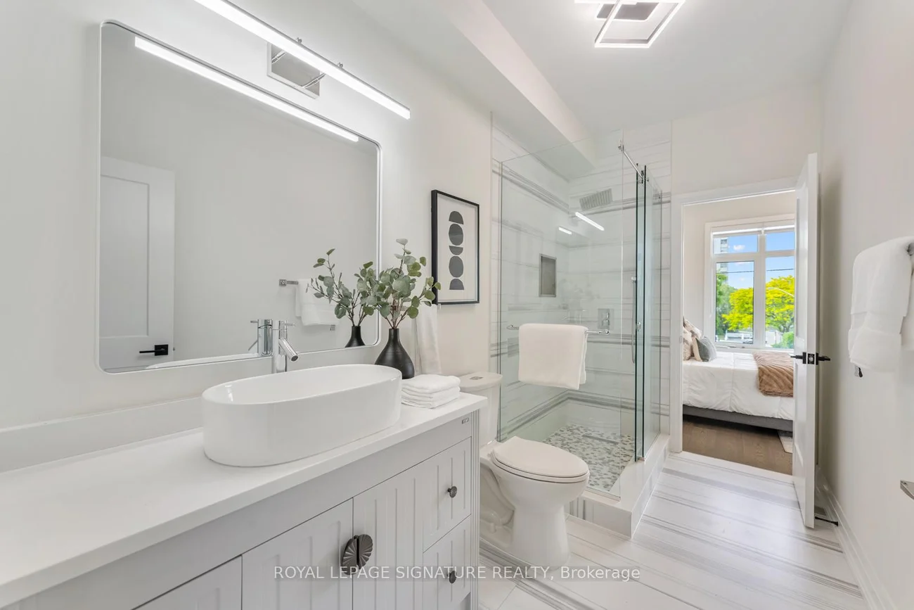 Majestic 4+1 Bedroom, 5 Bathroom Detached Home Situated on a premium 112.5 ft deep lot! This stunning property offers 2,481 sq ft above grade + 900 sq ft of finished basement space.Impressive curb appeal with stone and ACM Panelling exterior, elegant interlocking and a large covered front porch. Open-concept main floor highlighted by gorgeous engineered hardwood flooring and custom wainscoting. Spacious dining room ideal for entertaining, with seamless flow into the Family Room featuring built-in cabinetry and a gas fireplace with a sleek feature wall. Chefs kitchen boasts a sleek two-tone design, quartz countertops, matching backsplash, custom pendant lighting, a waterfall center island, high-end built-in appliances, and a full separate pantry. The living room features a gorgeous detailed accent wall and massive windows.Luxurious primary retreat offers a spa-inspired 7-pc ensuite, custom walk-in closet with organizers, and a feature wall. A secondary bedroom includes its own private 4-pc ensuite and double closet. 3rd and 4th Bedrooms share a 4pc bath and both include double closets! Convenient second-floor laundry room included.The fully finished basement features LED pot lights, a stylish full kitchen with quartz counters, stainless steel appliances, a 4-pc bathroom with custom tiling, separate laundry, and direct walk-out access. Includes 1 spacious bedroomsperfect for an in-law suite or income potential and a massive rec room can be split to create a 2nd bedroom!Fully fenced backyard with a large sun deck and a large shed! Steps to the TTC and the grand Stan Wadlow Park and Taylor Creek Trails!