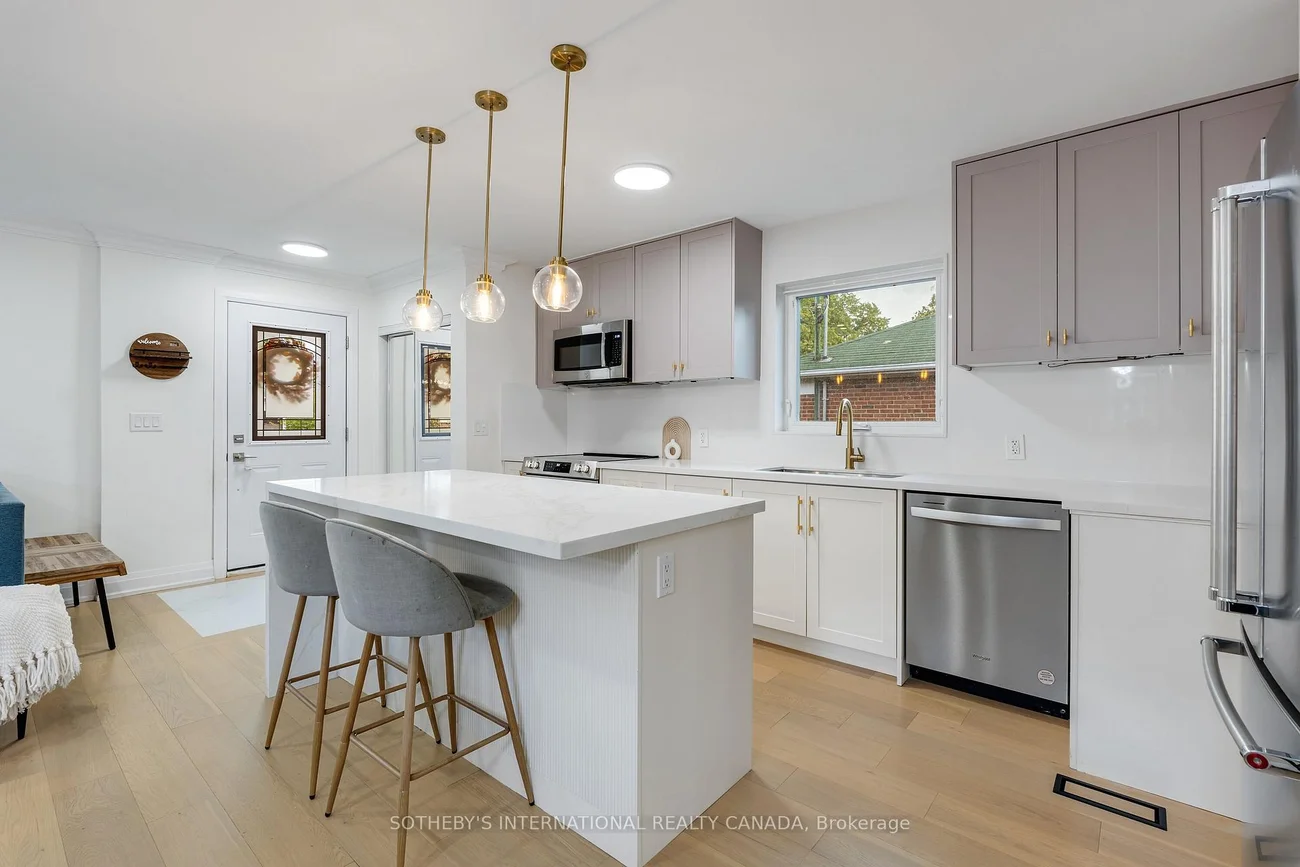 A seamless blend of style and sophistication, this beautifully renovated bungalow offers refined living in the heart of Dorset Park. Defined by an open-concept design, the interiors showcase subtle textures and a palette of soft tones that evoke warmth and modern luxury. The living and dining areas flow effortlessly beneath recessed lighting and statement fixtures, creating a bright and inviting atmosphere ideal for both entertaining and everyday living.The kitchen is a contemporary showpiece featuring quartz countertops, sleek custom cabinetry, and premium stainless steel appliances-all complemented by a spacious island with elegant pendant lighting. The main floor hosts three serene bedrooms, each designed with understated sophistication and thoughtful detail. The finished lower level, complete with a separate entrance, offers two independent suites-each with its own kitchen and bath-providing an excellent opportunity for multi-generational living or additional income potential. Outside, a private backyard framed by mature trees offers a quiet retreat for al fresco dining or unwinding under the open sky. Perfectly situated near parks, schools, shopping, and major transit routes, this home delivers a rare balance of urban convenience and refined residential comfort.