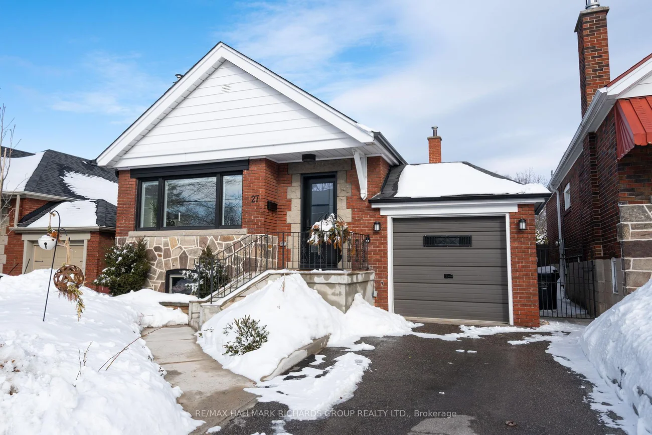 Welcome to 27 Ferncroft Drive - a thoughtfully updated detached bungalow in the heart of Birch Cliff, just moments to the lake, parks, and Kingston Rd amenities.Situated on a quiet, non-through street, this 2+1 bedroom, 2 bathroom home offers private parking and a beautifully renovated open-concept main floor (2023). Features include hardwood flooring, a marble-surround gas fireplace, updated lighting, and a modern kitchen with LG fridge and stove (2021), Bosch panel-ready dishwasher (2021), Panasonic built-in microwave (2023), and range hood (2023).Two fireplaces (one on each level) add warmth and character. The finished basement provides a spacious family room with fireplace, additional bedroom, office, and laundry - ideal for guests, work-from-home flexibility, or growing families.Recent updates include new furnace (2024), attic insulation (2023), custom front door (2023), custom power blinds (2023), new patio vinyl roofing (2022), new eavestroughs (2022), new sod (2021), and professional landscaping front and back (2024). Large covered patio and expansive backyard offer exceptional privacy and outdoor living space. Located near Blantyre Public School (JK-8) and Malvern Collegiate Institute (9-12). Steps to Blantyre Park, lakefront trails, and a short drive to Kingston Rd and Danforth shops and restaurants.A rare opportunity to enjoy quiet residential living with close proximity to the Beach and urban conveniences.