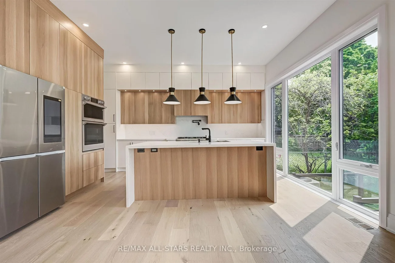 Welcome to 93 Cree Ave., a 2022-built contemporary smart home tucked away on a mature, tree-lined, QUIET CUL-DE-SAC in the coveted Cliffcrest neighbourhood. This striking residence boasts exceptional curb appeal with its elegant Indiana limestone facade. Spanning approximately 5,000 square feet of luxurious living space (including the basement), the interior showcases an open-concept, free-flowing layout with airy high ceilings, including a dramatic 20-foot-high soaring ceiling in the great room. Oversized windows create a seamless "indoor/outdoor" feel, complemented by custom drapery valued at approximately $35,000, two linear gas fireplaces, multiple skylights, and custom millwork throughout. Enjoy sun-filled principal rooms, a functional mudroom with a side entrance, engineered oak floors, and a luxurious custom chef's kitchen featuring solid oak cabinets, stainless steel appliances, a serving area, a waterfall centre island, and a walk-out to the deck and a fully fenced entertainers' yard. Upstairs, you'll find four spacious bedrooms, each with sleek en-suite bathrooms and custom built-in closet organizers. The fully finished basement adds valuable living space and offers convenient walk-up access. Thoughtfully designed and finished, this exceptional home delivers the perfect blend of space, style, and sophisticated modern living. Close proximity to the Scarborough Bluffs and Lake Ontario, offering access to parks, trails, and scenic waterfront views. Conveniently located near transit options and a variety of everyday amenities along Kingston Road.