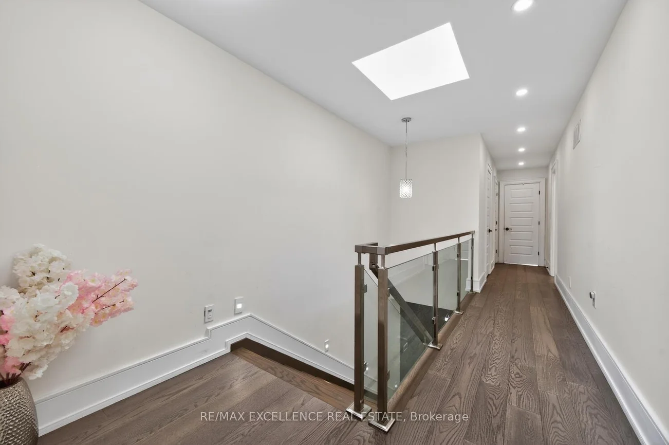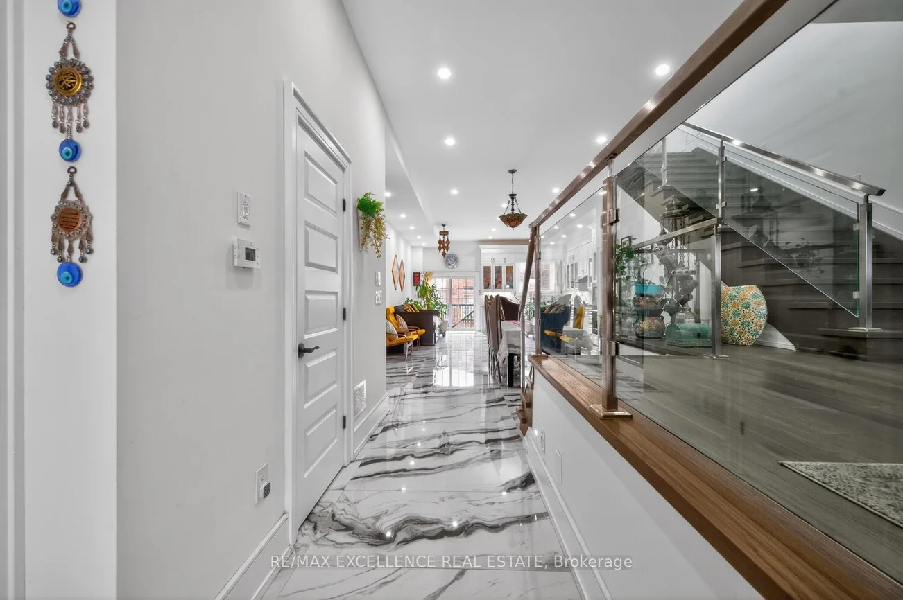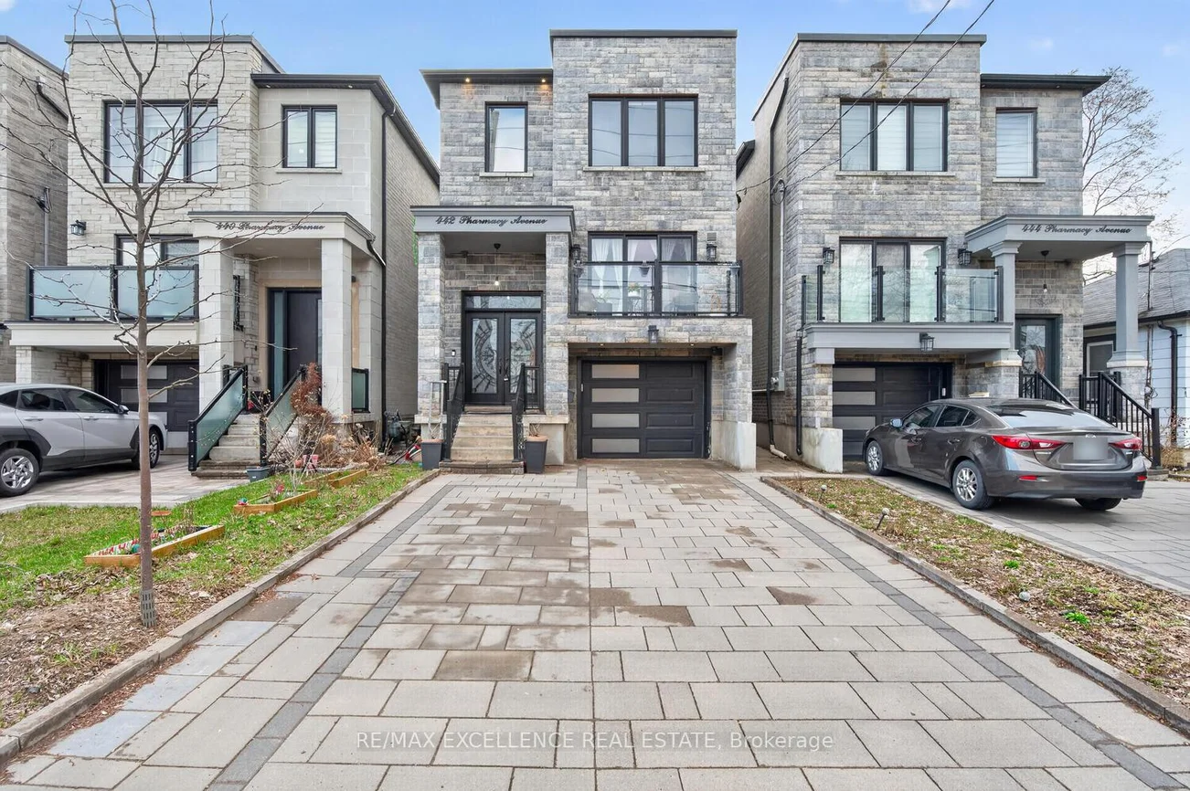Pride of Ownership! Welcome to 442 Pharmacy Avenue - a must see - custom-built duplex masterpiece (2021) designed for modern living and exceptional versatility. This stunning detached home offers 4 spacious bedrooms and 4 bathrooms above grade, paired with a **LEGAL** 3-bedroom basement apartment w/1-Kitchen & 1 bathroom featuring Two private entrances - ideal for extended family or rental income potential. Step inside to a bright, luxurious open-concept main floor with soaring 10.5 ft ceilings, extra-wide stairways w/sensor stair lights, and elegant oversized Porcelain Tiles on main floor. The chef-inspired kitchen is the true heart of the home, showcasing a large quartz island, matching quartz countertops and backsplash, and seamless flow into the living and family & dining areas complete with a custom built-in bookshelf and sleek electric fireplace. Thoughtfully designed with luxury, comfort and efficiency in mind, this home features radiant heated floors on the main level and in the primary ensuite, skylights flood the second floor with natural light, and multiple outdoor spaces including Two main floor balconies and a private walkout balcony from the primary bedroom. Additional highlights include double door entry, beautiful custom Chandelier, pot lights throughout interior and exterior, central vacuum, tankless water heater, 200 amp service, EV wired garage setup, Hot/Cold water in garage, BBQ gas line, & parking for 4 vehicles (1 garage + 3 driveway). A rare opportunity to own a newer, income-generating home with premium finishes in a highly desirable & accessible & diverse Toronto community. Close to TTC transit, DVP Highway, Shopping and easy access to Downtown ! Note: Some Pictures may contain Virtual Staging.