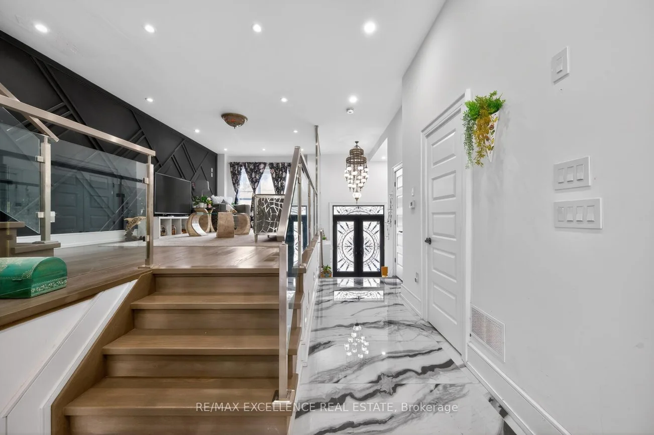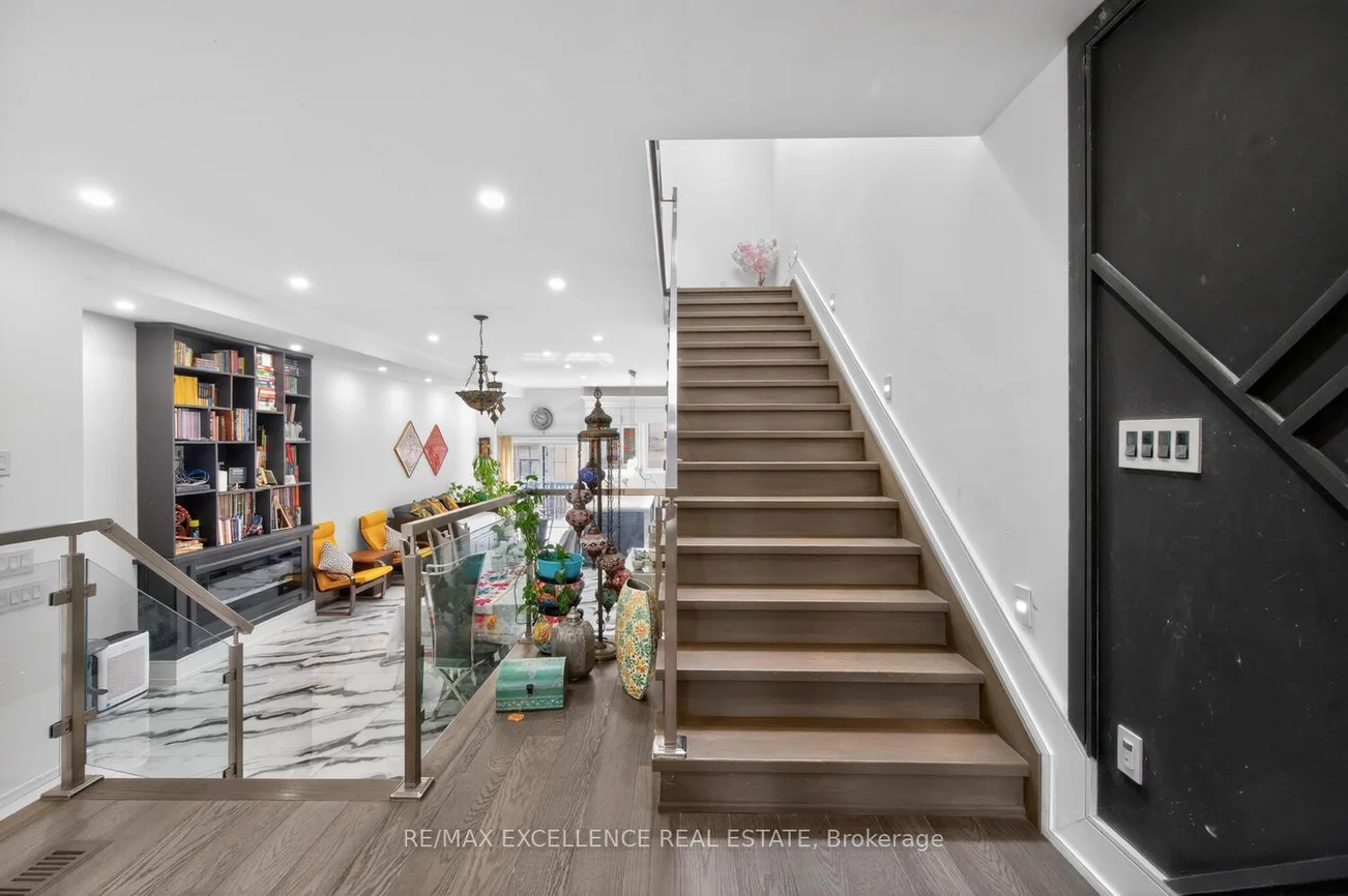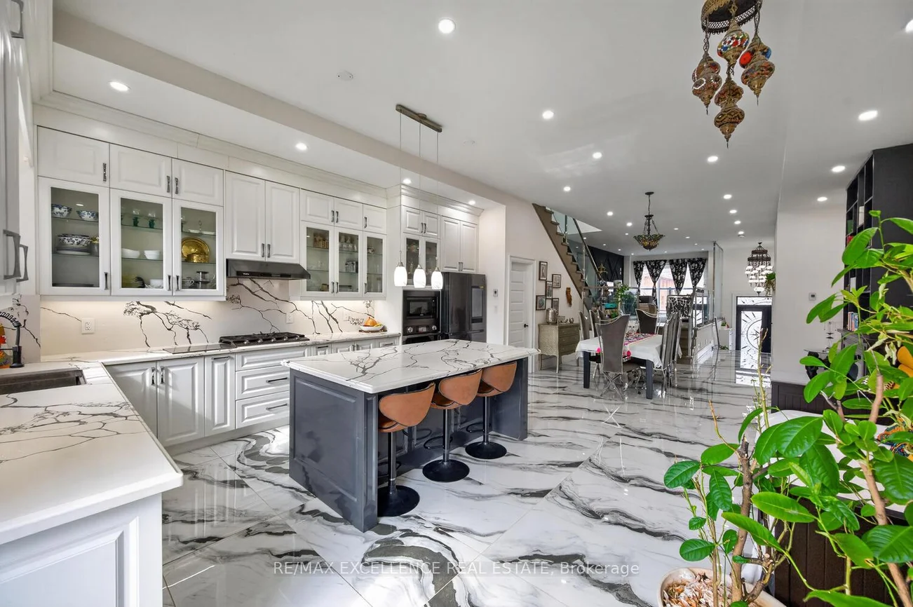 Pride of Ownership! Welcome to 442 Pharmacy Avenue - a must see - custom-built duplex masterpiece (2021) designed for modern living and exceptional versatility. This stunning detached home offers 4 spacious bedrooms and 4 bathrooms above grade, paired with a **LEGAL** 3-bedroom basement apartment w/1-Kitchen & 1 bathroom featuring Two private entrances - ideal for extended family or rental income potential. Step inside to a bright, luxurious open-concept main floor with soaring 10.5 ft ceilings, extra-wide stairways w/sensor stair lights, and elegant oversized Porcelain Tiles on main floor. The chef-inspired kitchen is the true heart of the home, showcasing a large quartz island, matching quartz countertops and backsplash, and seamless flow into the living and family & dining areas complete with a custom built-in bookshelf and sleek electric fireplace. Thoughtfully designed with luxury, comfort and efficiency in mind, this home features radiant heated floors on the main level and in the primary ensuite, skylights flood the second floor with natural light, and multiple outdoor spaces including Two main floor balconies and a private walkout balcony from the primary bedroom. Additional highlights include double door entry, beautiful custom Chandelier, pot lights throughout interior and exterior, central vacuum, tankless water heater, 200 amp service, EV wired garage setup, Hot/Cold water in garage, BBQ gas line, & parking for 4 vehicles (1 garage + 3 driveway). A rare opportunity to own a newer, income-generating home with premium finishes in a highly desirable & accessible & diverse Toronto community. Close to TTC transit, DVP Highway, Shopping and easy access to Downtown ! Note: Some Pictures may contain Virtual Staging.