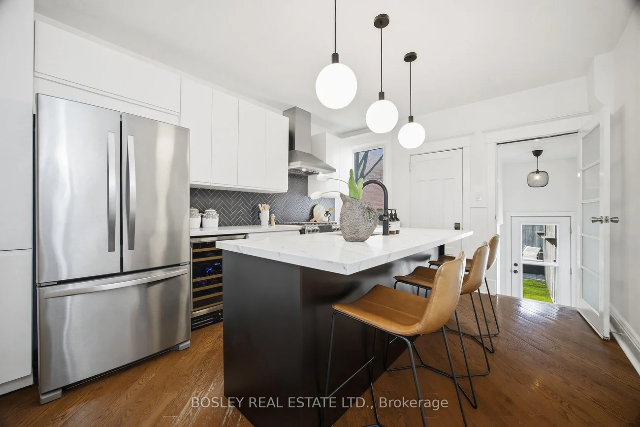 118 Mountjoy Avenue is a truly special home, filled with warmth, character, and incredible natural light throughout. This beautifully maintained property offers a bright, open layout with sought-after south-facing exposure, hardwood floors, and exceptional storage, including a spacious walk-in pantry - perfect for effortless everyday living. The renovated kitchen is both stylish and functional, featuring high-end appliances, a wine fridge (hello!), and generous prep and storage space, ideal for both daily use and entertaining. Designer light fixtures from Elte and The Lighthouse Co. elevate the interior, while original details such as exposed brick, classic moldings, a traditional mantle, and brass hardware add timeless character. A charming bay window in the primary bedroom fills the space with soft, natural light throughout the day and is complemented by updated blinds. A versatile rear sunroom extends the living space - perfect as a sun-filled home office, cozy reading nook, or additional family area. The lower level adds even more flexibility, ideal for movie nights, a playroom, or a dedicated workspace. A beautiful, custom-designed nursery by ALEXANDRA GATER adds an element of thoughtful design. Outdoors, enjoy quiet evenings soaking up the sun on the inviting front porch, while the private, leaf-shaded backyard with new turf offers a cool and tranquil retreat - perfect for relaxing or hosting summer BBQs with family/friends. Ideally located just a 5-minute walk (96 walk score), to all the Danforth shops, restaurants (including Michelin star, *Wood Owl*!), cafes, subway, and Monarch Park, it is also surrounded by excellent amenities including top-rated daycares such as Blossoming Minds, highly regarded schools including Earl Haig Secondary and École Secondaire Michelle-O'Bonsawin. This is a home that truly offers the best of east-end living and its incredible community!! YOUTUBE SEARCH - ALEXANDRA GATER DIY SURPRISE BOHO NURSERY MAKEOVER.