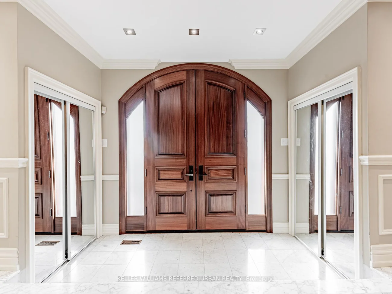 Welcome to a truly exceptional residence-an architectural masterpiece that defines luxury living. Situated on a prominent professionally landscaped corner lot in the most prestigious pocket of the GTA, this immaculate home commands attention from the moment you arrive. A grand arched 8-foot-wide, 2-inch-thick solid oak double-door entrance opens to a Grandioso foyer with soaring 18-foot ceilings, lots of windows, a stunning chandelier. A dramatic winding open oak staircase leads gracefully to both the upper and lower levels, setting the tone for the impressive layout throughout. The main floor offers an ideal blend of elegance and functionality. On one side, the formal living and dining rooms are finished with exquisite style perfect for entertaining. To the other side, a private office/library which provides a comfortable workspace for today's top professionals working from home. The expansive, open-concept massive kitchen is a chef's dream, featuring a 2nd dining area, a study nook, lots of windows for natural sunlight, brand-new stainless-steel appliances, and an island/bar for a nice hang out spot. The large family room features its own fireplace and a quiet and inviting sitting area enhanced by skylights-a sunroom overlooking your gorgeous professionally landscaped backyard. Your backyard oasis consists of full privacy for your high-end functions, built-in custom brick BBQ, paved flagstone and plenty of space for large gatherings. Upstairs, you'll find your generously sized bedrooms. The luxurious primary retreat boasts a walk-in closet and a spa-like 5-piece ensuite with heated floors, a soaker tub, and a separate shower. An additional bedroom includes its own three-piece ensuite, offering comfort and privacy for family or guests. The lower level is equally impressive, featuring a full second kitchen w/new appliances, a full bathroom, high ceilings, windows, walkout, perfect for a state of the art entertainment centre, Nanny's quarters or large in-law suite,