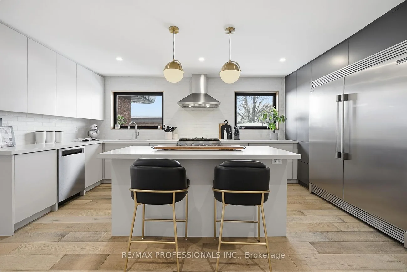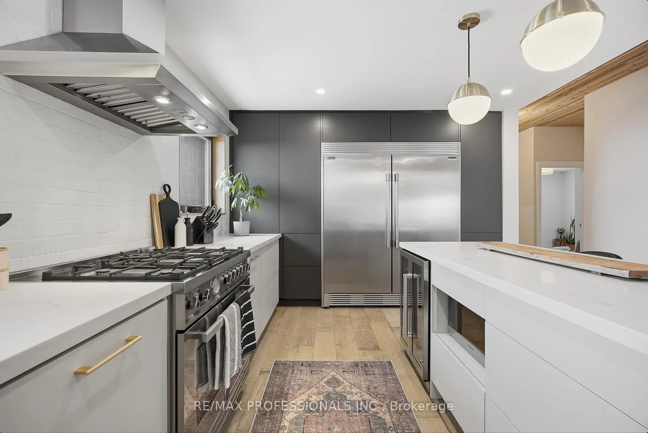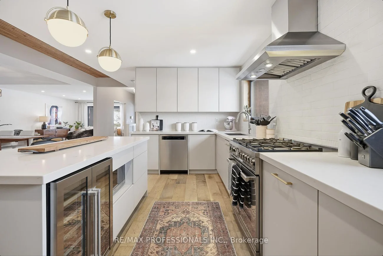 Rarely does a property of this caliber hit the market - a designer transformed 3+2 bedroom, 3 bathroom masterpiece that feels like a true 5-bedroom home in beautiful Alderwood. Situated on a large 43' x 137' lot with over 3000 sqft of living space, it offers a scale of luxury and privacy that narrower lots simply cannot match. This "one-of-a-kind" residence features inspiration and design by a celebrated Canadian artist. The interior is highlighted by soaring 8 ft ceilings vaulted to 9 ft on the main floor, accented with natural wood details and wire-brushed wide plank oak flooring. At the heart of the open-concept main floor sits a stunning chef's kitchen equipped with a 36" 6-burner Bertazzoni range, a 66" Frigidaire Professional side-by-side refrigerator, and a massive quartz island. Each of the three bathrooms is curated with its own unique character; the primary ensuite is a west-facing sanctuary with Stelpro heated floors and a rain shower, while the main 4-piece bathroom impresses with a concrete double sink and heated Italian Terrazzo porcelain flooring. The bright lower level functions as a true extension of the home with impressive 8 ft ceilings, a gas fireplace, and custom millwork. The home is mechanically superior with a high-efficiency Bosch boiler and Daikin AC system. Beyond the double-car garage, the property boasts an oversized, fully insulated backyard studio with electrical power, offering an ideal home office or potential garden suite conversion. Perfectly positioned near the great schools, parks, Long Branch GO Train and major highways. 18 Treeview Drive is the definitive choice for a family seeking space, style, and a premier location.