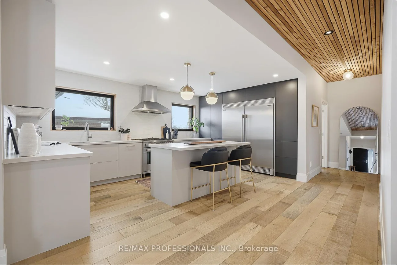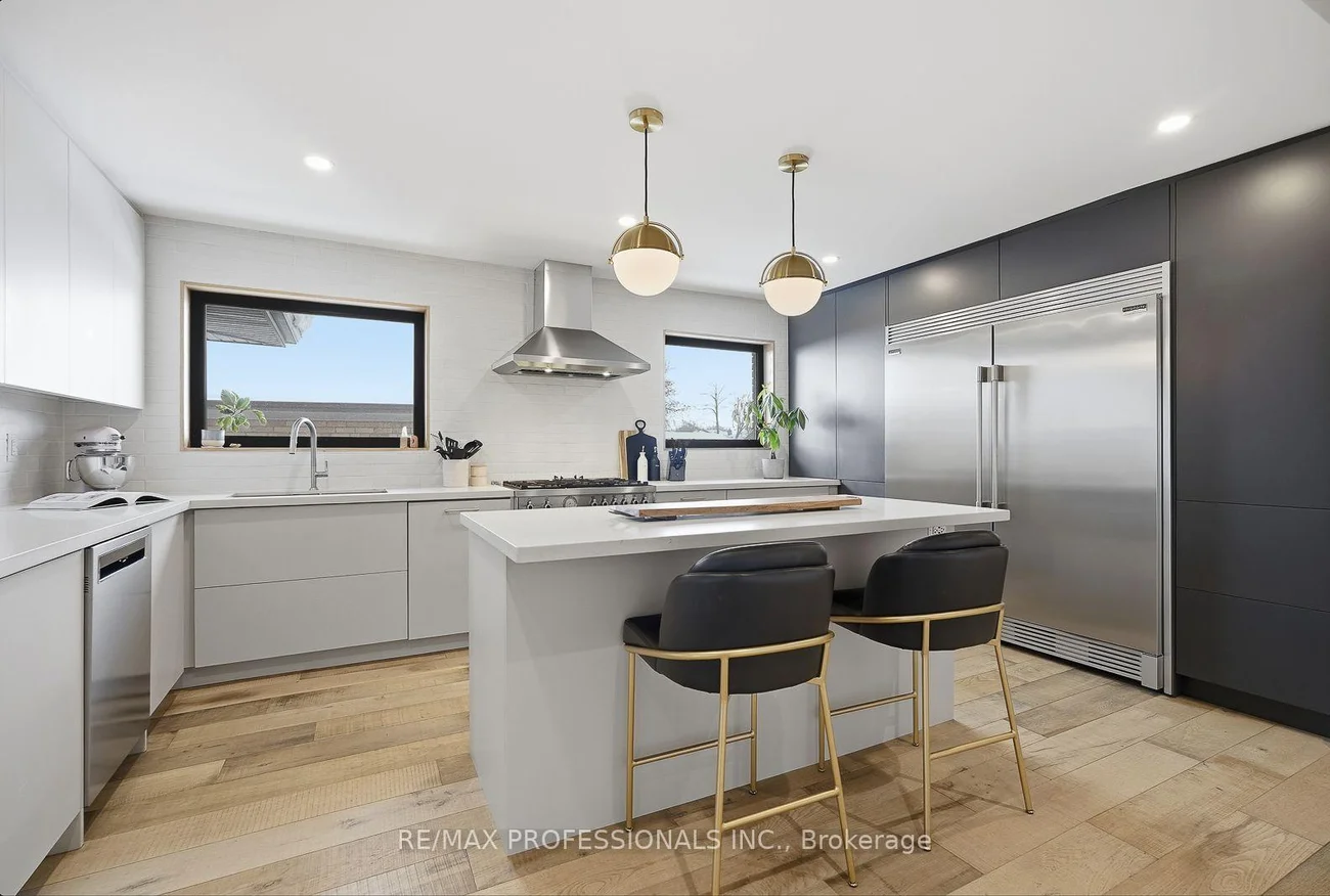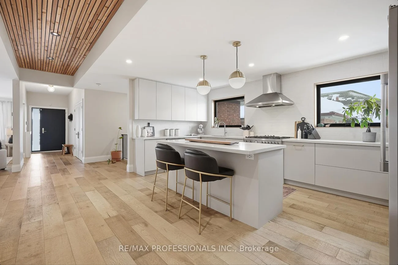 Rarely does a property of this caliber hit the market - a designer transformed 3+2 bedroom, 3 bathroom masterpiece that feels like a true 5-bedroom home in beautiful Alderwood. Situated on a large 43' x 137' lot with over 3000 sqft of living space, it offers a scale of luxury and privacy that narrower lots simply cannot match. This "one-of-a-kind" residence features inspiration and design by a celebrated Canadian artist. The interior is highlighted by soaring 8 ft ceilings vaulted to 9 ft on the main floor, accented with natural wood details and wire-brushed wide plank oak flooring. At the heart of the open-concept main floor sits a stunning chef's kitchen equipped with a 36" 6-burner Bertazzoni range, a 66" Frigidaire Professional side-by-side refrigerator, and a massive quartz island. Each of the three bathrooms is curated with its own unique character; the primary ensuite is a west-facing sanctuary with Stelpro heated floors and a rain shower, while the main 4-piece bathroom impresses with a concrete double sink and heated Italian Terrazzo porcelain flooring. The bright lower level functions as a true extension of the home with impressive 8 ft ceilings, a gas fireplace, and custom millwork. The home is mechanically superior with a high-efficiency Bosch boiler and Daikin AC system. Beyond the double-car garage, the property boasts an oversized, fully insulated backyard studio with electrical power, offering an ideal home office or potential garden suite conversion. Perfectly positioned near the great schools, parks, Long Branch GO Train and major highways. 18 Treeview Drive is the definitive choice for a family seeking space, style, and a premier location.