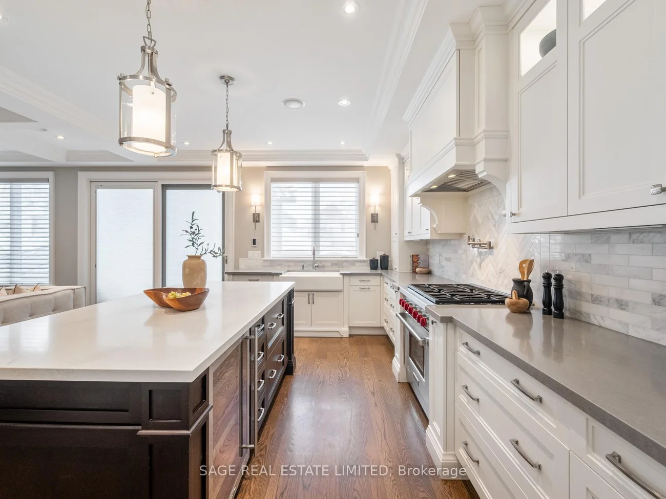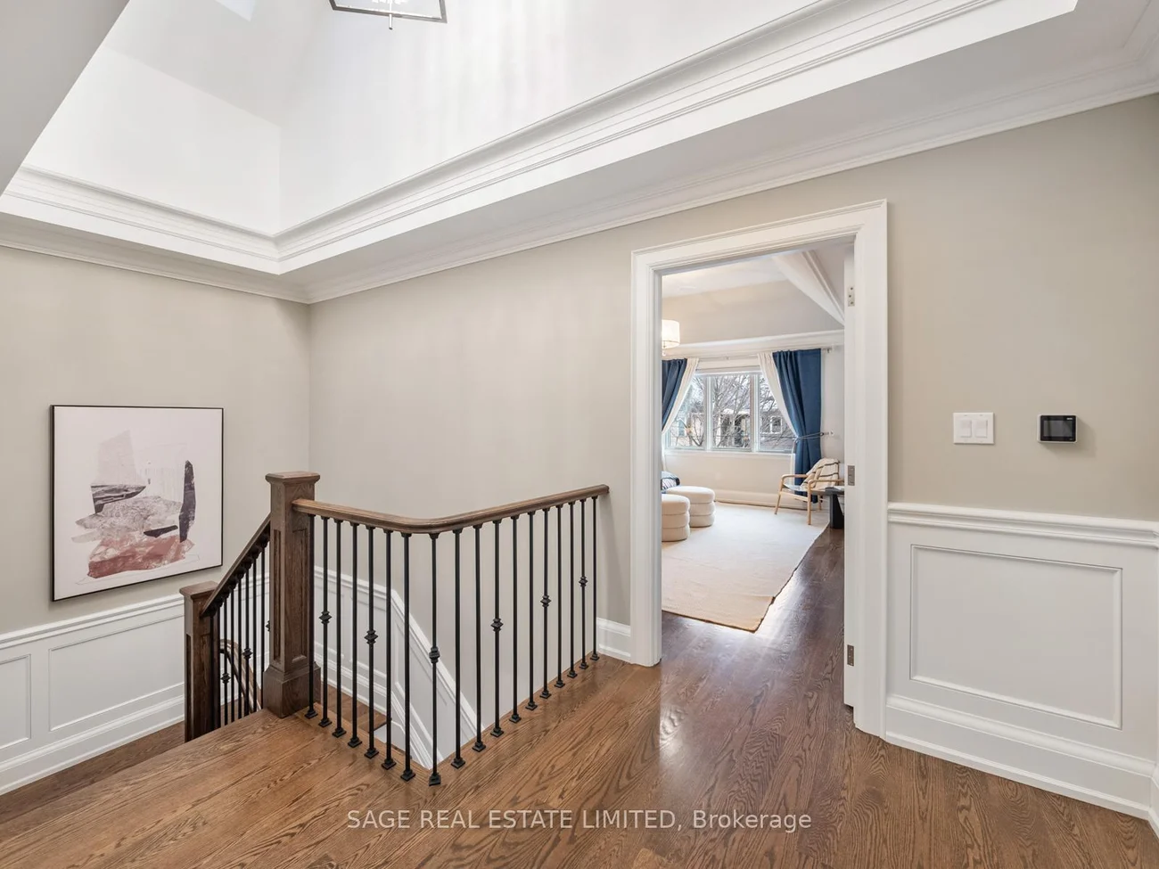 Royal York Reserve. Positioned in highly sought-after Sunnylea, this custom-built 4+1 bedroom, 5-bathroom home designed by architect David Small, seamlessly blends traditional charm with modern sophistication. The main floor features a private office, formal dining room, and a mudroom with a convenient wash station. The open-concept chef's kitchen is outfitted with Wolf and Sub-Zero appliances, a large cast-iron sink, centre island, hardwood floors, and pot lights - perfectly designed for entertaining. The living room impresses with a coffered ceiling, gas fireplace with built-ins, and an integrated speaker system. Upstairs, four spacious bedrooms with ensuite access, complemented by a convenient second-floor laundry room. Three retractable skylights with rain sensors flood the upper level with natural light, creating a bright and airy atmosphere throughout. The primary suite showcases luxurious finishes, with heated flooring extending through the primary bath and into the fully finished lower level. A Russound system connects seamlessly to SiriusXM, Spotify, and a tuner for immersive sound throughout the home. The lower level is thoughtfully designed for both children and adults, offering separate spaces while remaining comfortably within earshot. A separate side entrance further enhances the flexibility of this level, presenting excellent potential for extended family living or future customization. Outside, synthetic turf and an irrigation system in both the front and back yards provide vibrant, year-round greenery with minimal maintenance. Enjoy Sunnylea's vibrant lifestyle, steps from local favourites and just minutes to the Royal York subway station - downtown in approximately 30 minutes door-to-door. Located within a highly regarded school district, this is a community where families truly thrive.