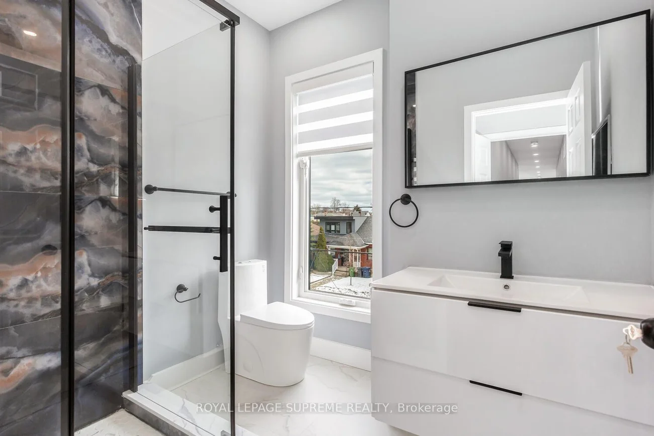 Rare opportunity to own an exceptionally large, brand new fully detached legal triplex with additional laneway access and a city-approved laneway house opportunity-drawings included and major infrastructure already completed (electrical, plumbing, drainage, water line and concrete foundation), offering the next owner the potential to significantly increase long-term income and value. This purpose-built property is ideal for investors, multi-generational families, or buyers looking to live in one unit while generating substantial rental income from the others. Thoughtfully designed and built with quality craftsmanship throughout, the property features three self-contained units with 3 kitchens, 7 bedrooms and 6 bathrooms, along with three separate hydro and gas meters. Each unit includes tankless hot water heaters, independent furnaces and air conditioners, private in-suite laundry, engineered hardwood flooring, pot lights throughout, and brand new stainless steel appliances. Security cameras are installed around the property for added peace of mind. Public transit is at the doorstep with a direct bus to the subway, making this a rare turn-key investment in a convenient location. The main floor unit offers 9-ft ceilings, a bright open layout with office space, two bedrooms and one bathroom, plus a spacious living room and modern kitchen with quartz countertops and stainless steel appliances leading to a private deck. The upper unit spans two levels with two bedrooms each featuring their own ensuite bathrooms, a large sun-filled living room and kitchen overlooking the backyard, while the upper level offers a private primary retreat with two balconies and a spa-inspired ensuite with quartz counters, double sinks, light-up mirror and tunnel skylight. The basement suite features 8-ft ceilings, two bedrooms each with its own ensuite bathroom, a spacious living and dining area, and a bright kitchen with walk-up access to the backyard.