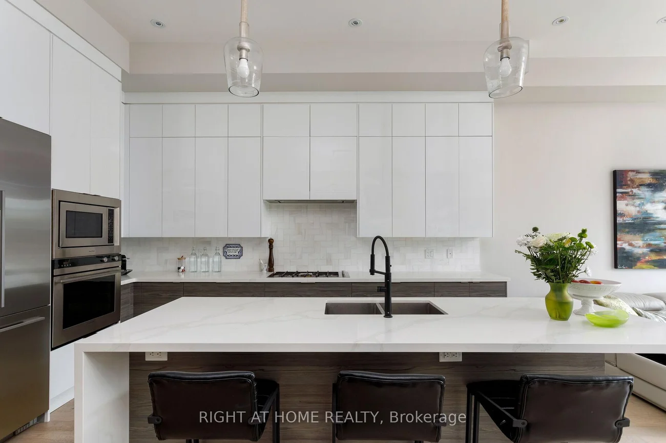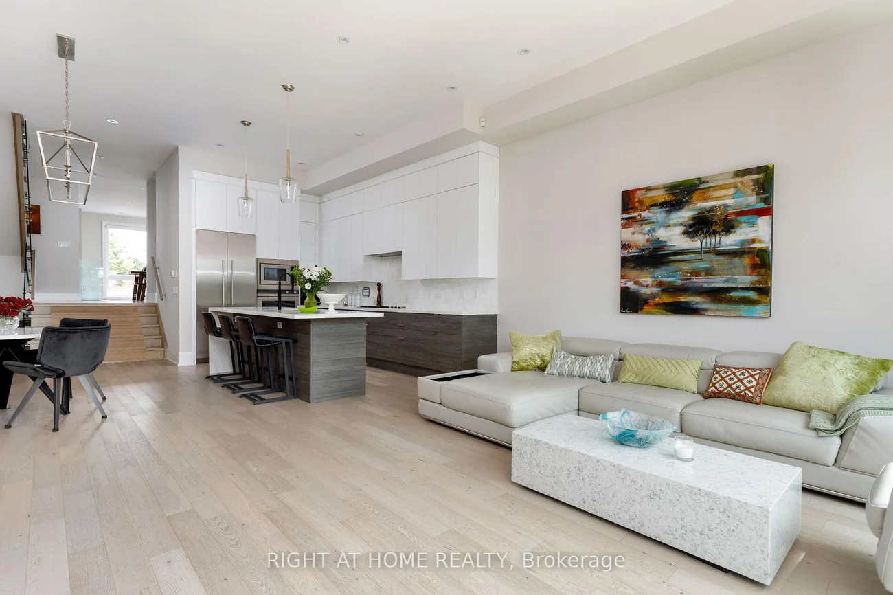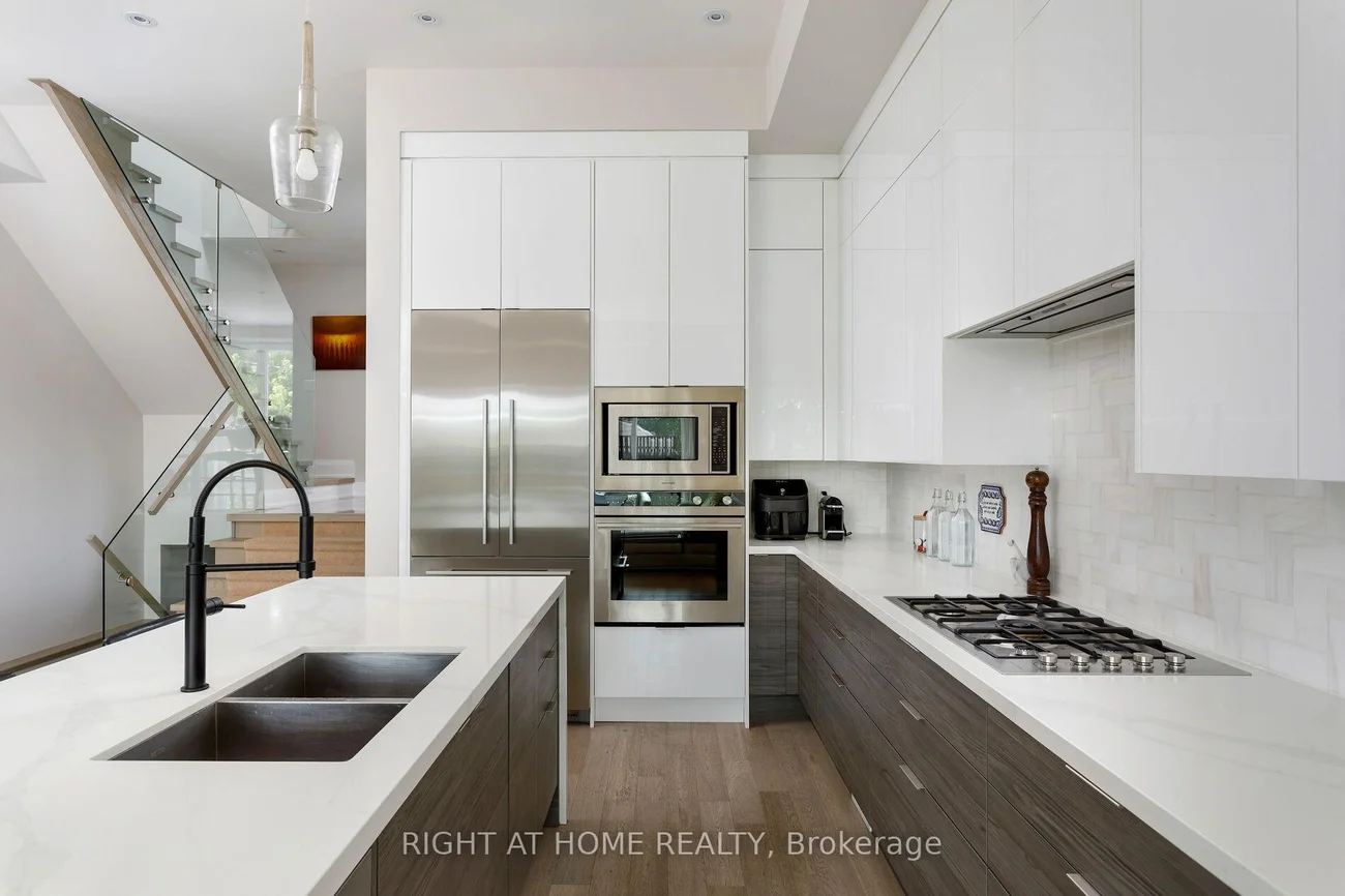 Not all homes are created equal. This all brick ,Energy Star certified masterpiece created by Wynford Homes will take your breath away. With over $100k in upgrades and aprox. 3000 sq/ft of beautifully designed total living space it offers 3 bedrooms and 4 bathrooms finished with a modern sophistication that is unmatched. The 11 ft ceilings in the main living space and 8 ft double sliding doors across the back of the home create a bright and beautiful flow out to the private back deck. The beauty of the upgraded designer Cameo kitchen is enhanced by a 9 ft quartz island with waterfall, double sided breakfast bar and Italian marble backsplash. The upgraded Fisher Paykel appliances and bounty of custom kitchen cabinetry is complimented by the 11 ft porcelain clad gas fireplace with floating custom shelving. Along with the accompanying dining area this space is a dream for families and entertaining. The 6 ft porcelain floors in the separate dining area create a bright and quiet elegance along side the beautiful 5" hardwood floors throughout. The glass railings initiate a seamless transition as you move to the upper level of the home where you will find 3 large bedrooms. The generous primary suite is accompanied by a large on suite adorned with a large free standing tub and separate glass enclosed shower. The walk in closet offers an abundance of custom cabinetry. As you move to the lower level of the home you are met with a bright open concept space with 10.5 ft ceilings and outfitted with your own private luxury gym space. In the backyard you will enjoy peace and tranquility on the expansive maintenance free composite deck overlooking the large fully fenced newly sodded yard. The location is ideal as you will be 15 min to downtown , 100m from a large park with pool and community centre, 2 min from the Mimico Go station and Sanremo Bakery at the top of the street. With 143ft of total lot depth . Remote Hunter Douglas Blinds were also newly installed for added privacy.