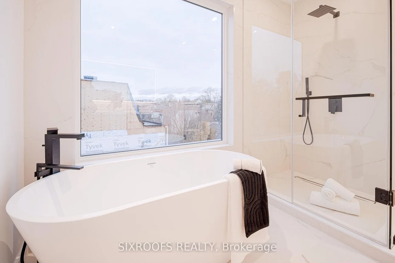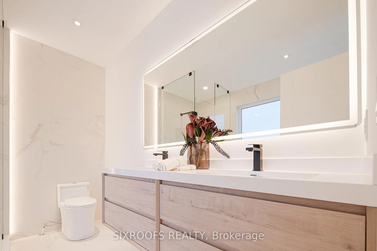 Welcome to 40 Morningside Avenue, a rare newly-built legal duplex offering just under 2,800 sq. ft. of sophisticated living space in a premier Toronto location. The airy main level impresses with soaring 10 ft. ceilings and an expansive open-concept layout that flows beautifully for entertaining, complemented by a cozy gas fireplace in the family room and the convenience of direct interior access to the garage. The home's crown jewel is the spectacular third-floor primary suite, a dedicated private sanctuary featuring a south-facing balcony with breathtaking views of the surrounding greenery. This property offers incredible versatility through its legal basement apartment, which feels like a primary living space thanks to tons of natural light, a full kitchen, and its own separate HVAC equipment. This lower level serves as a high-potential income generator, a suite for a stay-in nanny, or a professional home office, yet it can be easily integrated back into the main home by opening the drywall across from the garage door. Perfectly situated for the active urbanite, you are a mere stone's throw from the 400-acre oasis of High Park and within easy walking distance of the Bloor subway line, offering the perfect balance of nature and transit accessibility. This is a rare opportunity to own a modern, high-ceilinged masterpiece with flexible living options in a location that is truly second to none.
