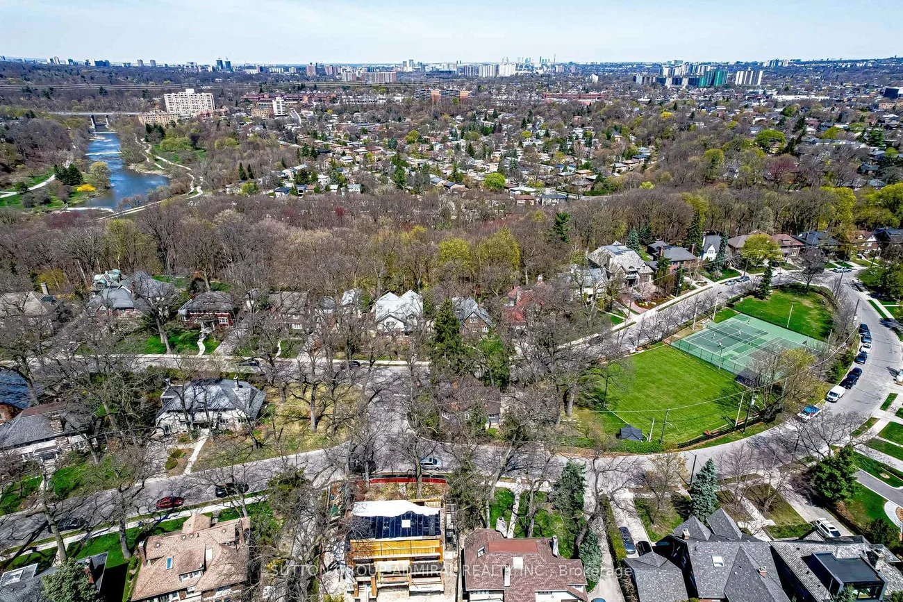 Don't miss this amazing opportunity in the coveted Baby Point area! This beautiful 2.5 story home is set on an impressive 75 by 380 ft RAVINE LOT, perfectly situated in this prestigious enclave, close to the Baby Point Club and many amenities, yet still peaceful & tucked away from the busier neighbouring streets offering a Muskoka-like scenery within the city. This lovely well maintained home retains plenty of the beautiful original character & charm, including unspoiled wood trim, high baseboards, wood-panelled walls and oak floors, wood-burning fireplace & stunning leaded glass windows.**This home boasts approximately 4,000 sq ft of living space across the four finished levels. ** Double car garage, extra parking in the private drive & an INGROUND POOL. **The main floor is designed for both entertaining & family life, featuring an exceptionally spacious formal living room that is anchored by a classic wood-burning fireplace and a gracious dining room, perfect for hosting family and friends. The big family room addition serves as the home's heart, boasting soaring 10-foot ceilings and wrap around floor-to-ceiling windows that frame the MAJESTIC PANORAMIC views. Five spacious bedrooms, including a huge primary bedroom, 4 bathrooms, main-floor office & sunroom. The renovated lower level is a true retreat, complete with a library, renovated bathroom and cedar sauna. The third floor offers lots of potential to create a primary bedroom retreat.** Short stroll to the Humber River trails, TTC, Old Mill or Jane St subway stations, excellent schools and the vibrant shops and restaurants of Bloor West Village. Join the Baby Point Club, which offers fabulous social and family activities, tennis, lawn bowling and much more. This is a rare opportunity for the discerning buyer, offering many possibilities, SPACE , PRIVACY AND PRESTIGE.