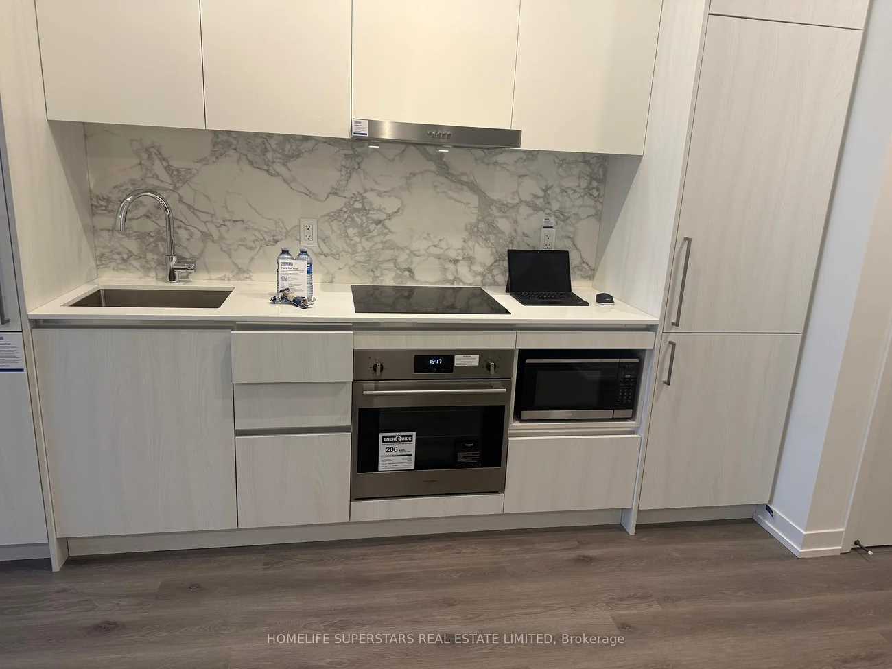 Just approx. 1 Year Old !Almost New !!! Tower ''A'' Spacious 1 Bedroom plus Den- 10 ft. High Ceilings Throughout, Full Height Glass Windows with Blinds, Bright & Clear North West Unobstructed View, Full-size balcony with modern high-end finishes, comes with 8 appliances -High End Built-in kitchen fridge/freezer (bottom drawer), Dishwasher, Stainless Steel Exhaust Hood, Ceramic Cooktop & Self-cleaning oven, Microwave, Quartz countertop with Porcelain backsplash tiles.