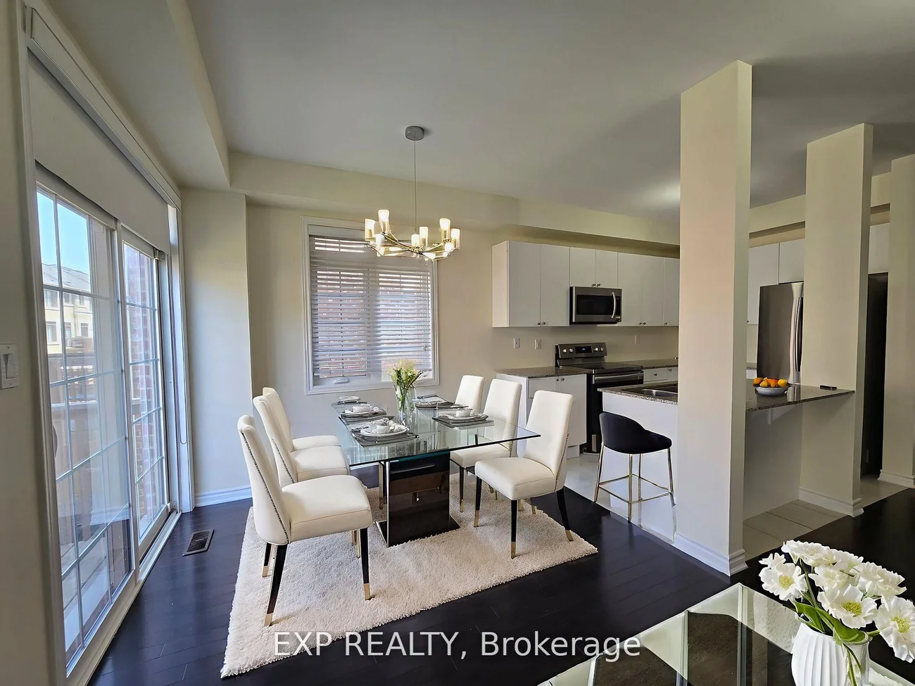 Spacious, luxurious, and highly desirable 4-bedroom end-unit freehold townhome perfectly situated in the prestigious Vellore community of Woodbridge. From the moment you walk through the door, you are welcomed by soaring ceilings, sun-filled spaces, and rich hardwood floors flowing seamlessly throughout. Enhanced by large windows, high ceilings, quality finishes, iron picket handrails, and an expansive living room, the home is wrapped in timeless elegance with modern comfort. The separate living and family rooms feature a cozy fireplace, creating a warm yet refined atmosphere ideal for everyday family living or hosting guests. An additional main-floor office offers the flexibility to work from home while enjoying complete comfort and privacy. The gourmet kitchen opens to a private back deck and showcases granite countertops, stainless steel appliances, and abundant cabinetry-perfect for daily living and effortless entertaining. The exterior boasts distinctive brick-and-stone architecture with elegant detailing that enhances curb appeal and pride of ownership. Located on a highly desirable, family-friendly street with a wide roadway near Major Mackenzie and Weston Road, this home offers exceptional convenience-close to Tommy Douglas High School, GNA Catholic School, Johnny Lombardi Public School, Walmart Shopping Complex, Chatfield District Park, Walk Trails, Canada's Wonderland, Vaughan Cortellucci Hospital, and Hwy 400-making daily essentials and commuting seamless. With its generous layout, premium finishes, and unbeatable location, this is more than a rental; it's a lifestyle upgrade. Basement not included in rental.